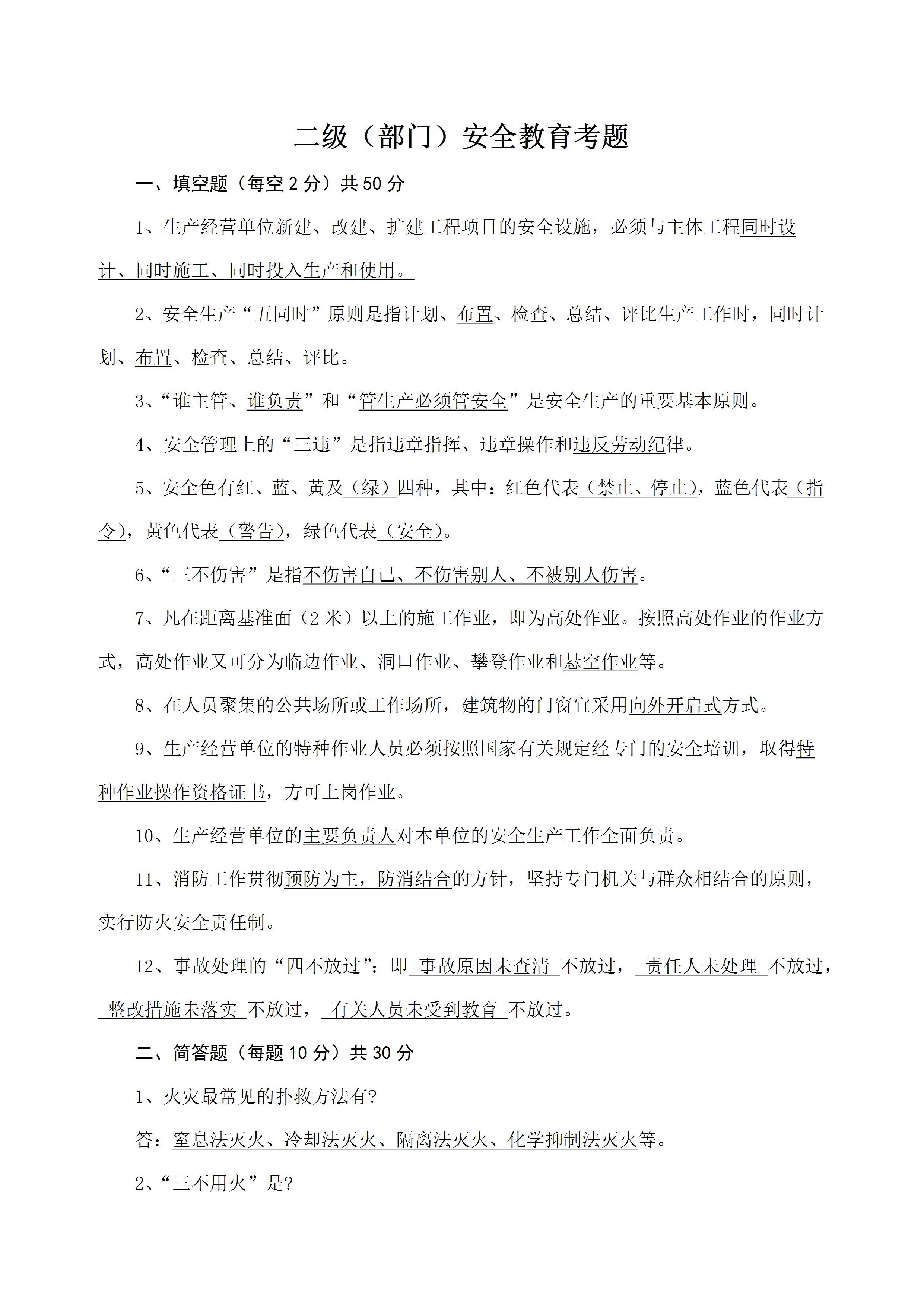/ 部门级安全教育试题参考答案