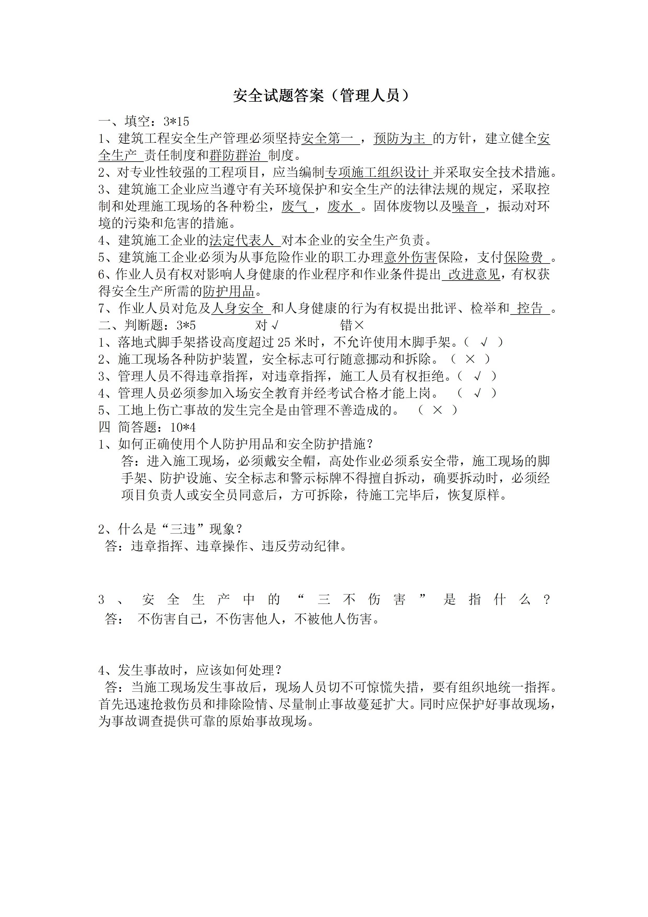 / 安全试题答案(管理人员)