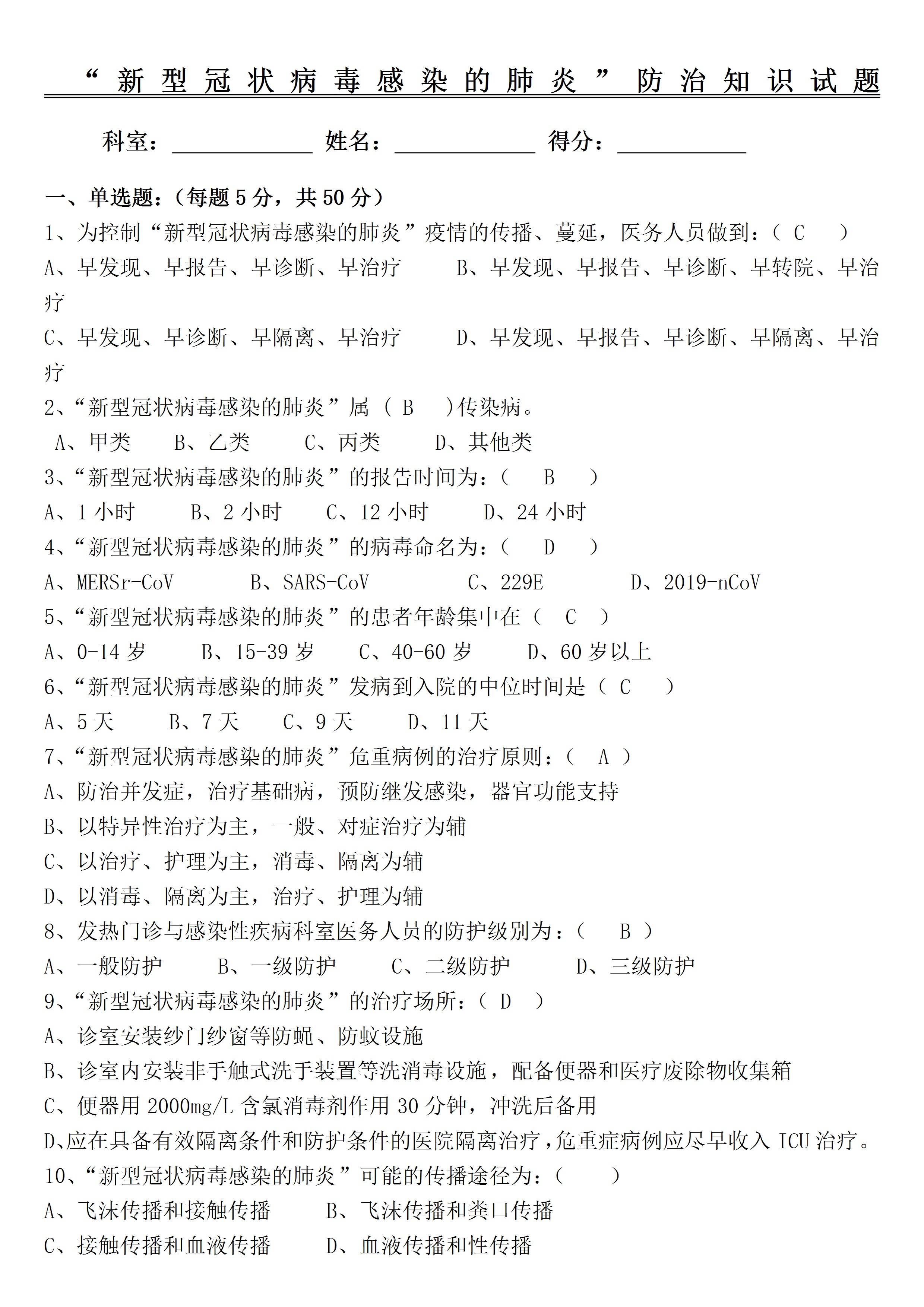 / 新型冠状病毒仿真试题二