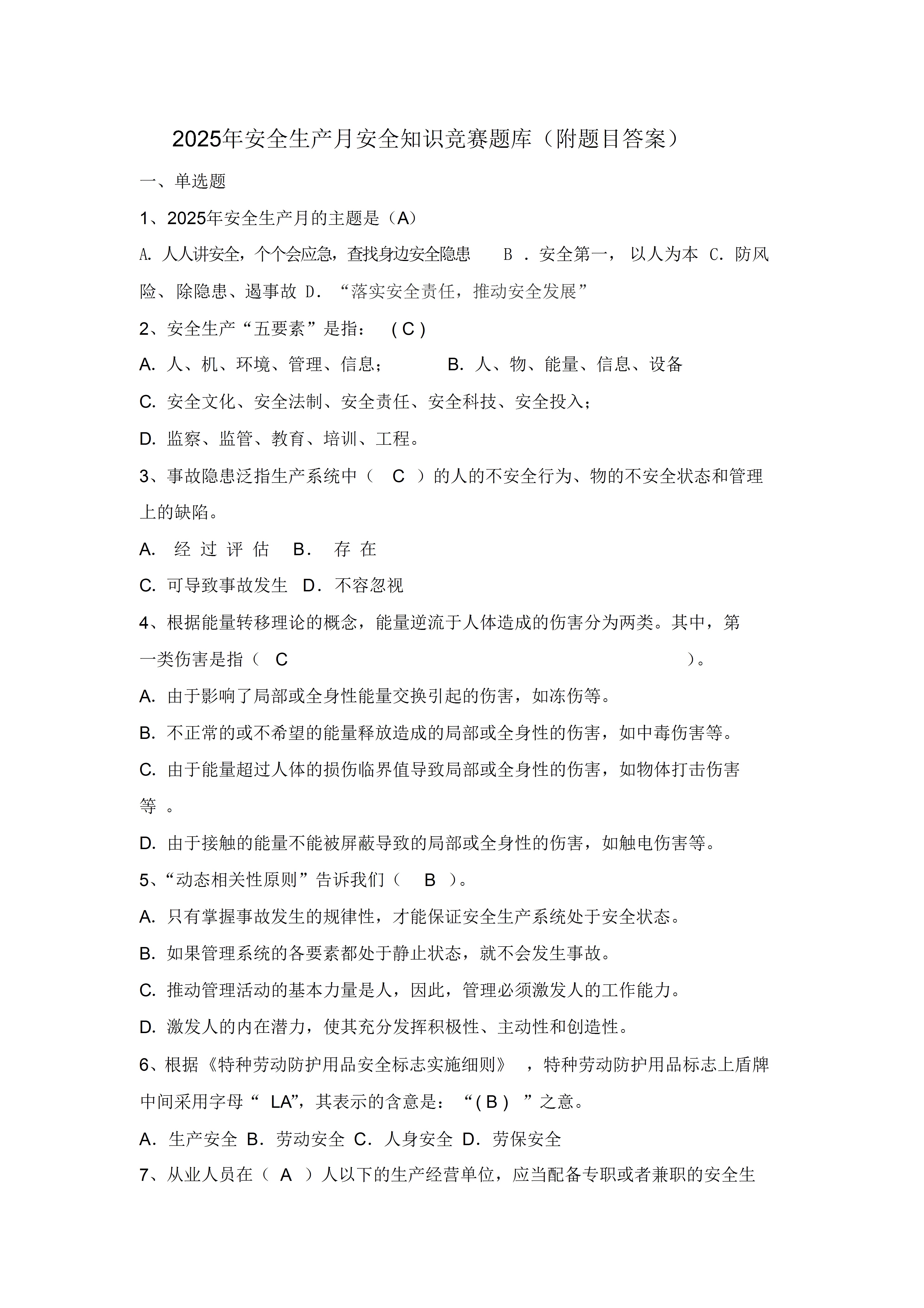 / 安全生产月安全知识竞赛题库(附题目答案)