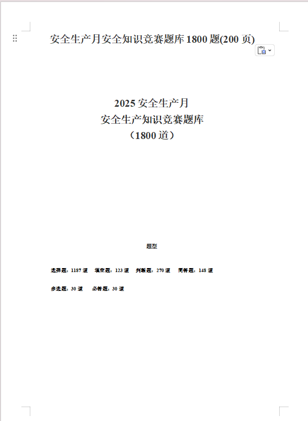 / 安全生产月安全知识竞赛题库1800题(200页)