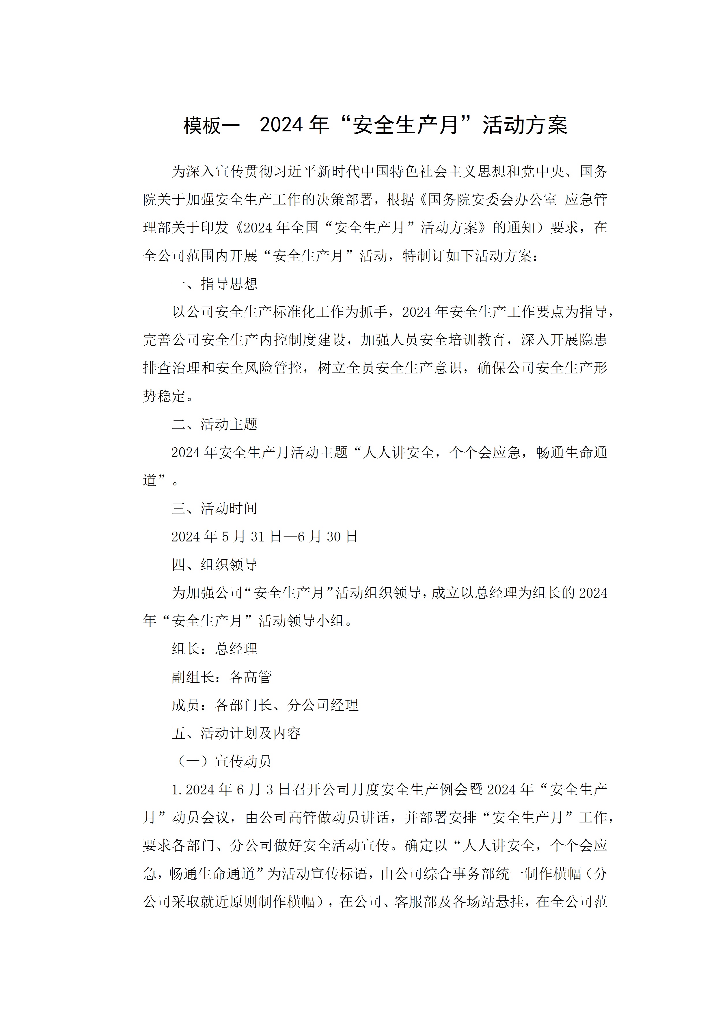 / 2024年安全生产月活动方案9个模板(附总结模板)