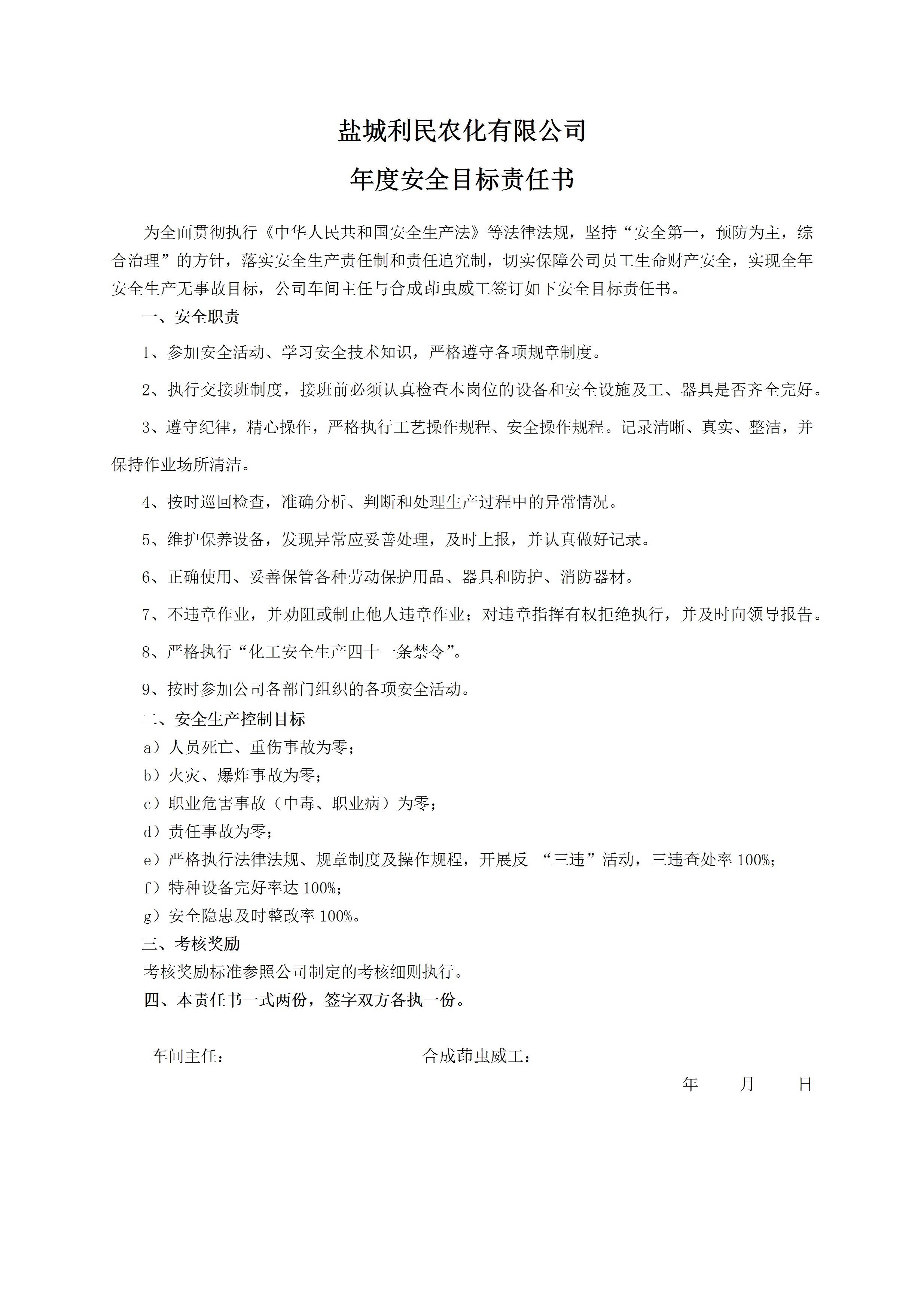 安全目标责任书(合成茚虫威工)[文档]