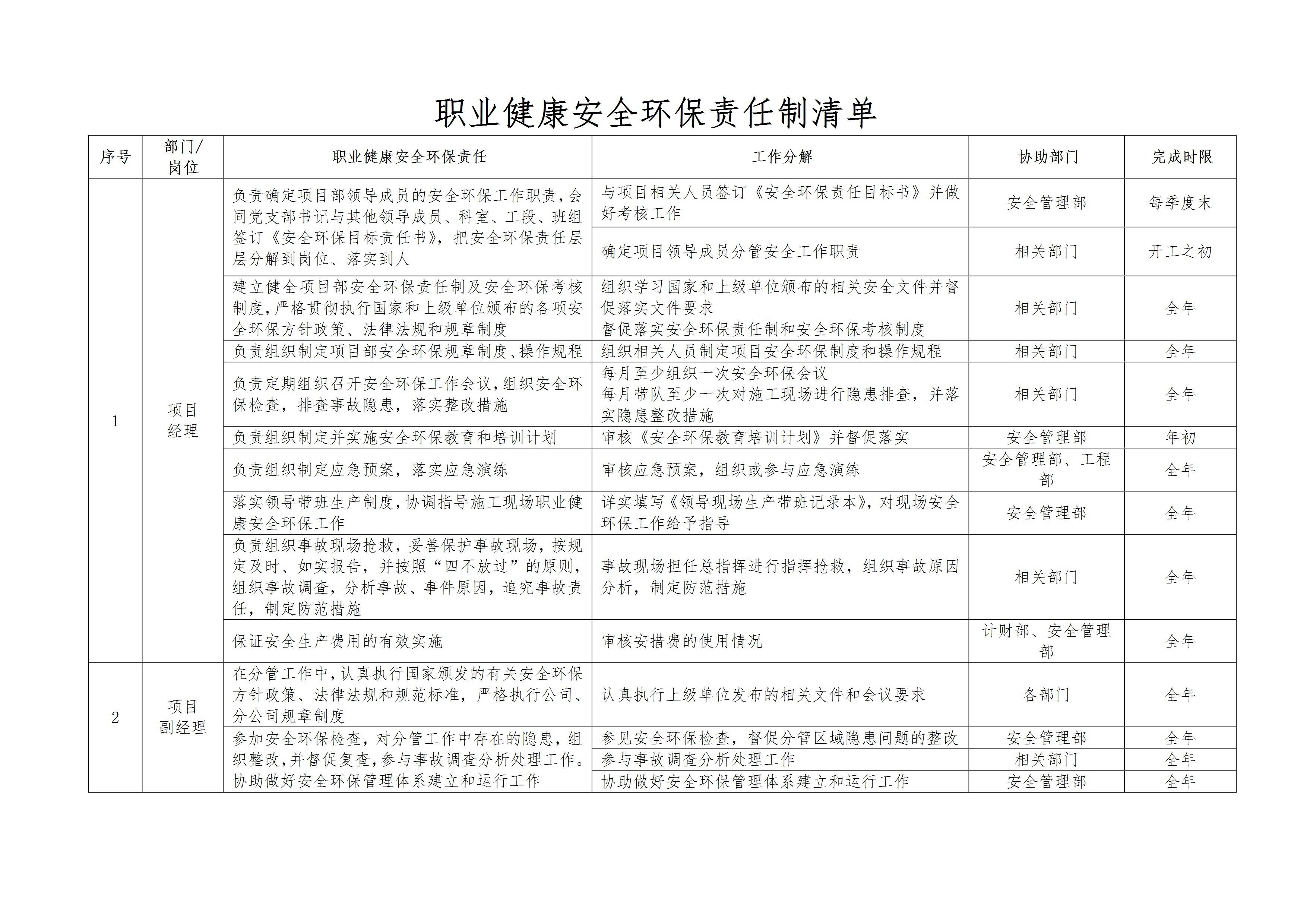 [汇编]职业健康安全环保责任清单[文档]