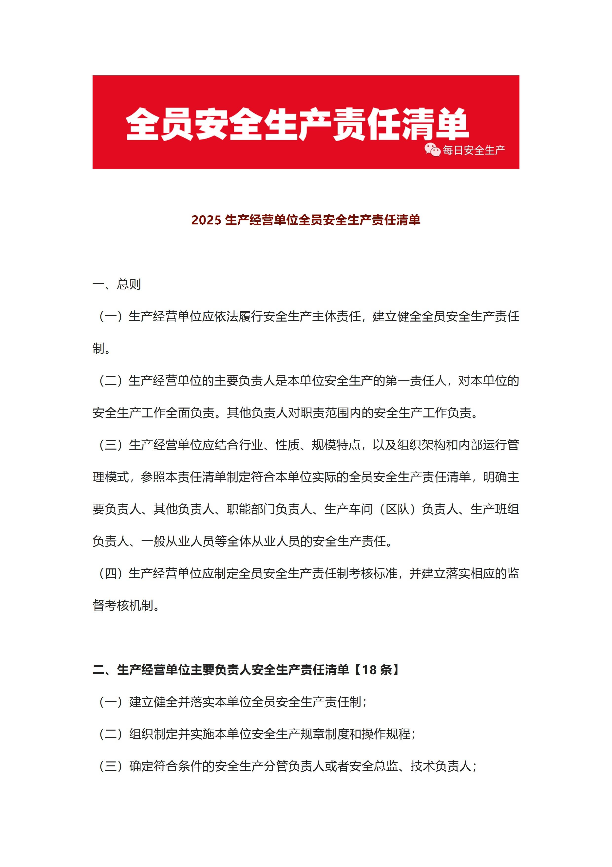 / 2025生产经营单位全员安全生产责任清单[文档]