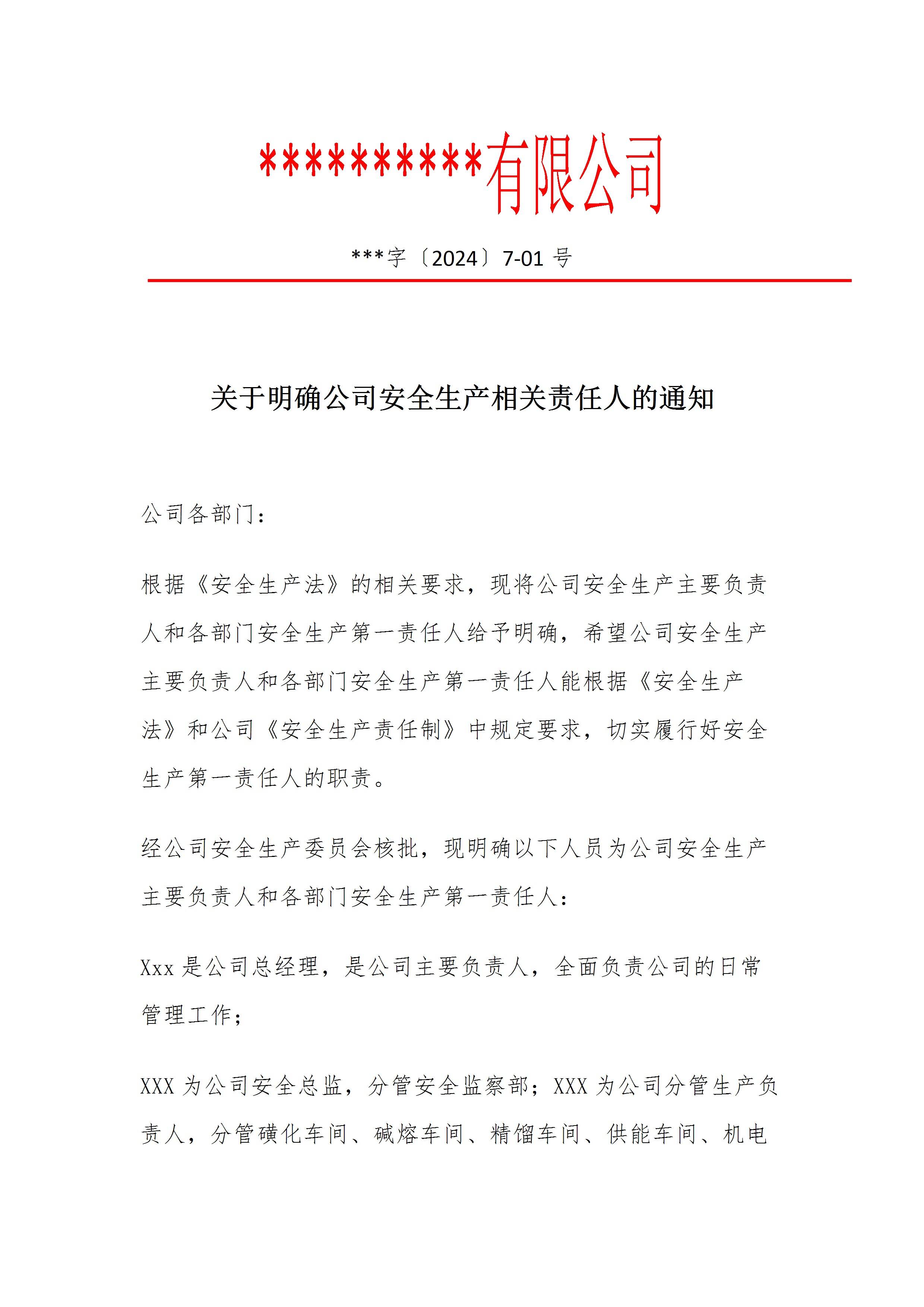 / [模板]关于明确公司安全生产相关责任人的通知[文档]