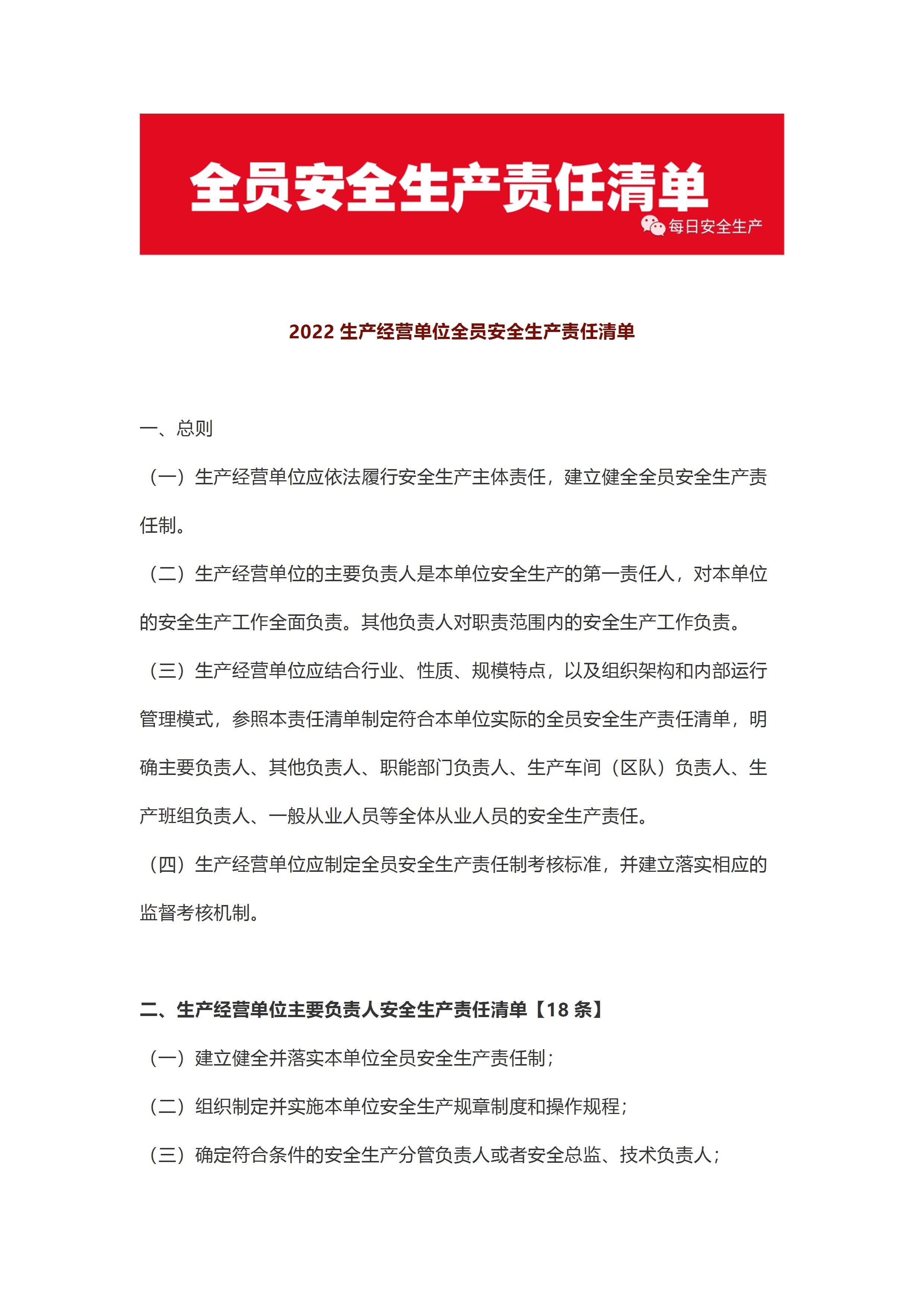 / 2022生产经营单位全员安全生产责任清单[文档]