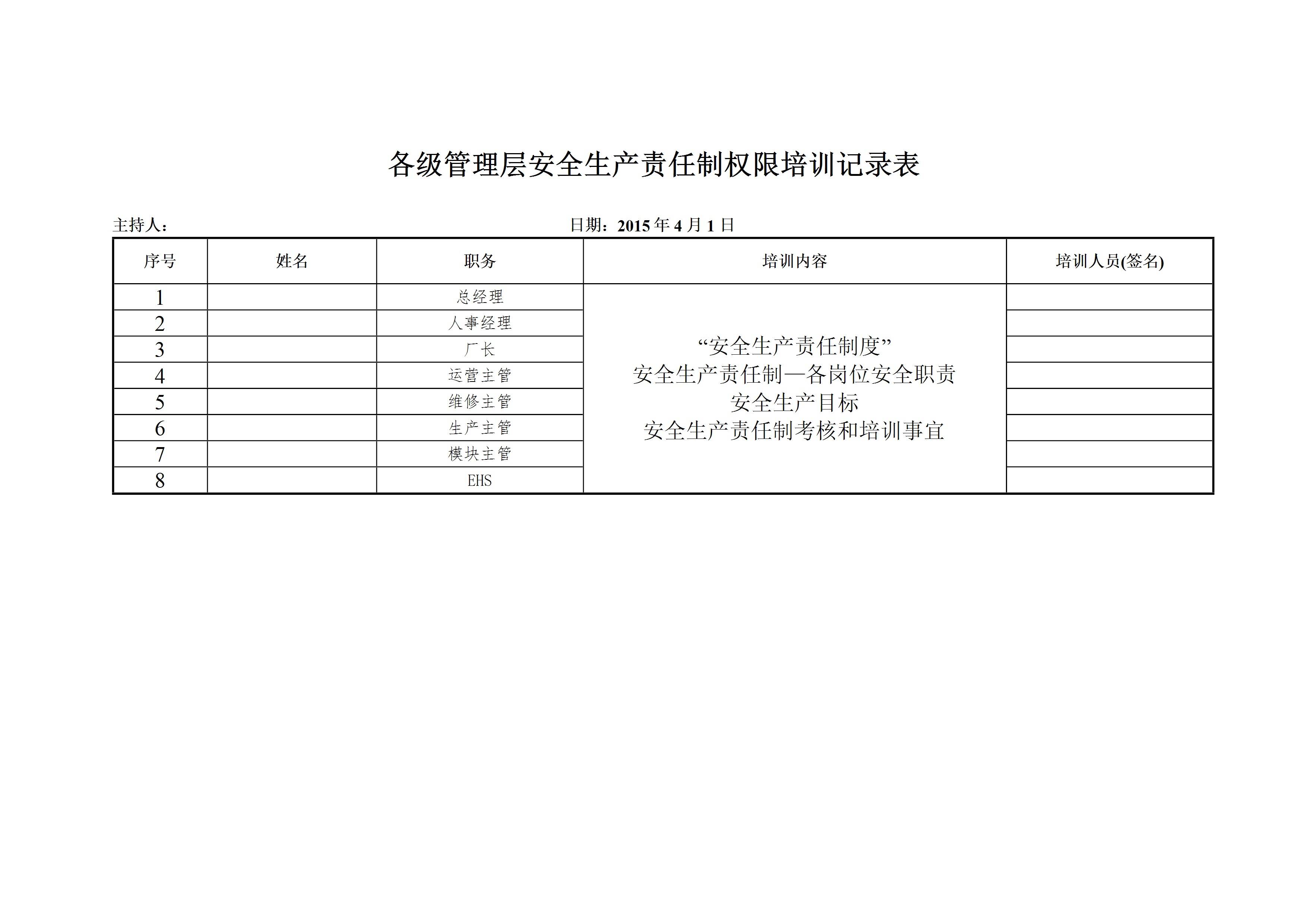 / 各级管理层安全生产责任制权限培训记录表[文档]