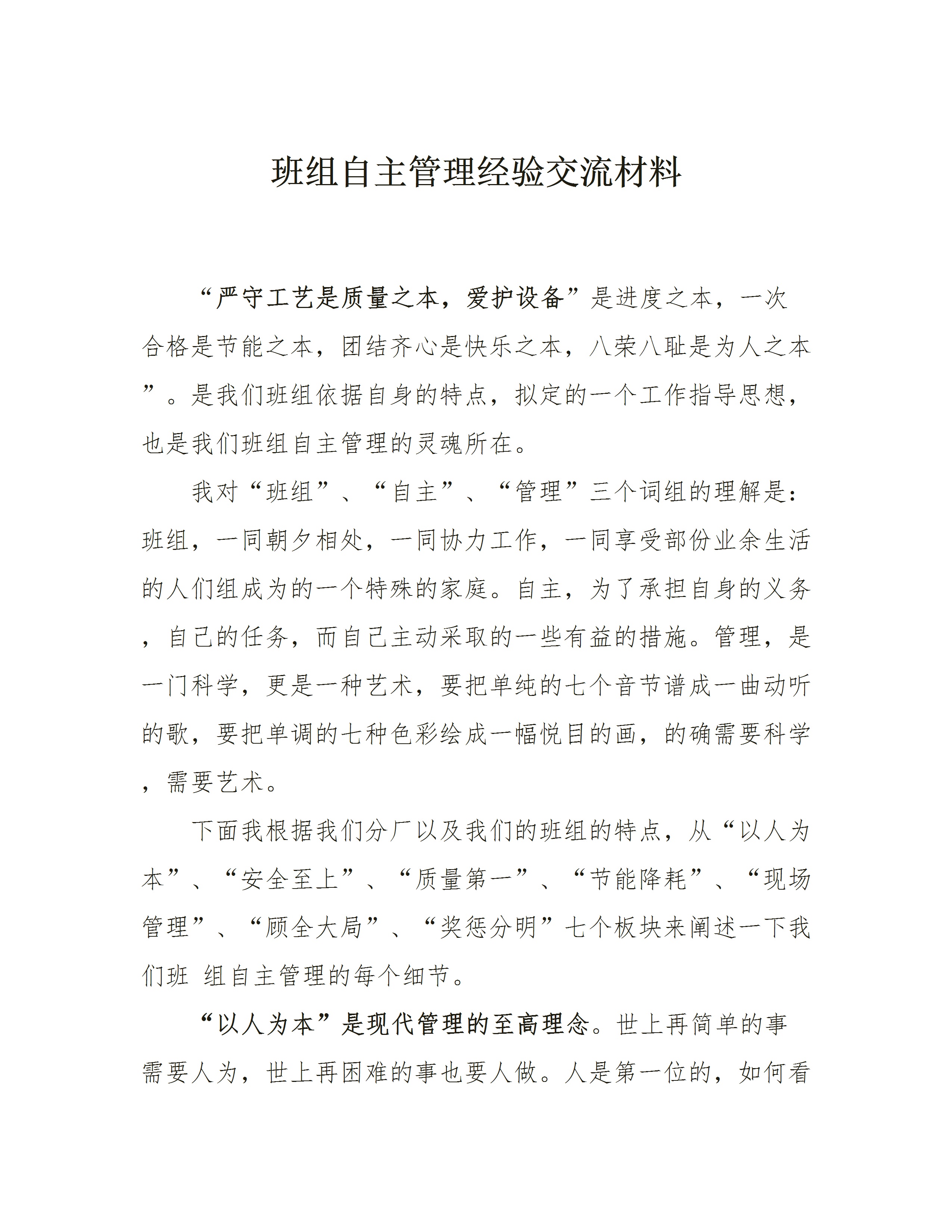 XX班组先进安全经验交流材料(5页)