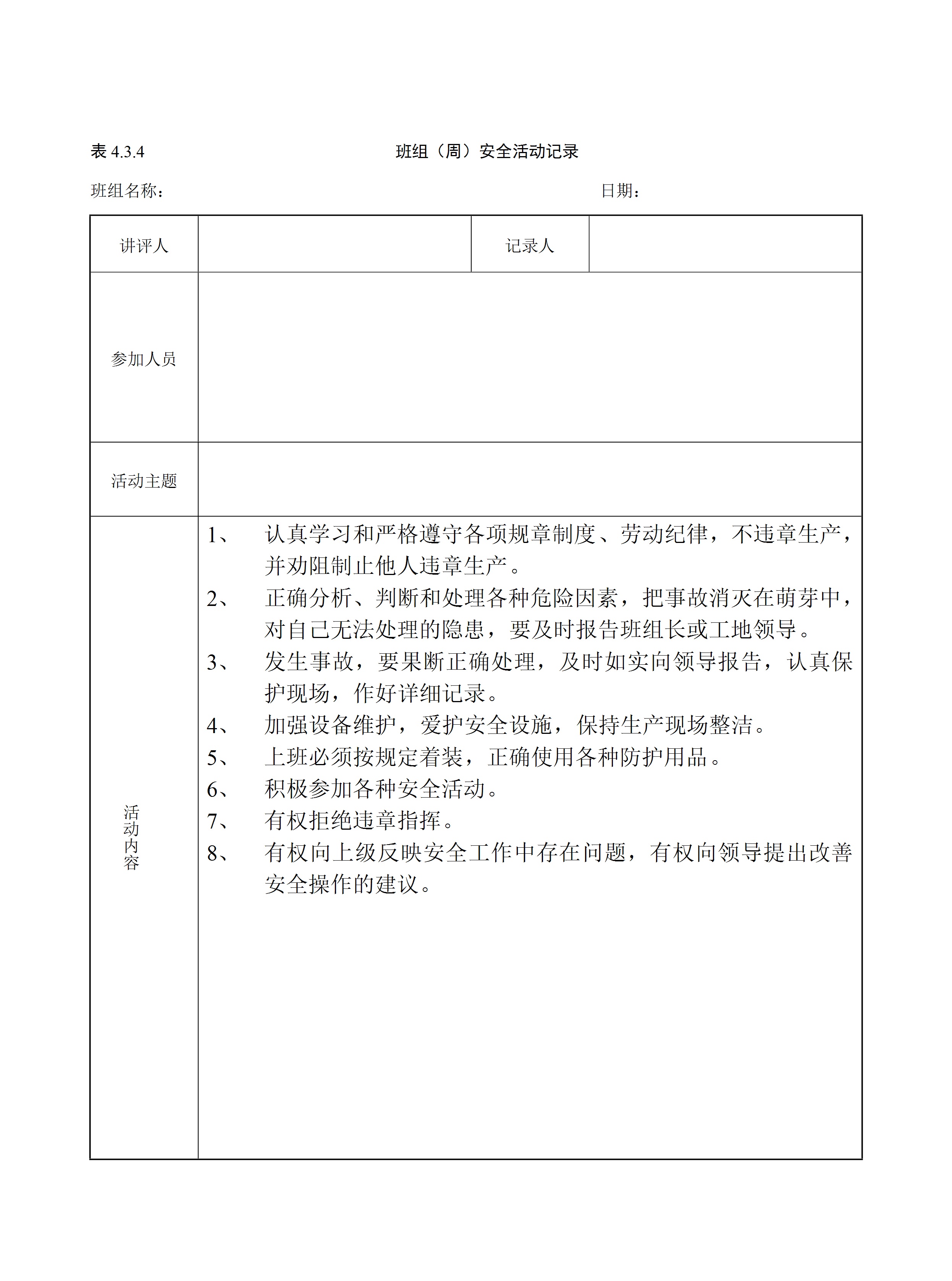 / 班组(周)安全活动记录(参考)