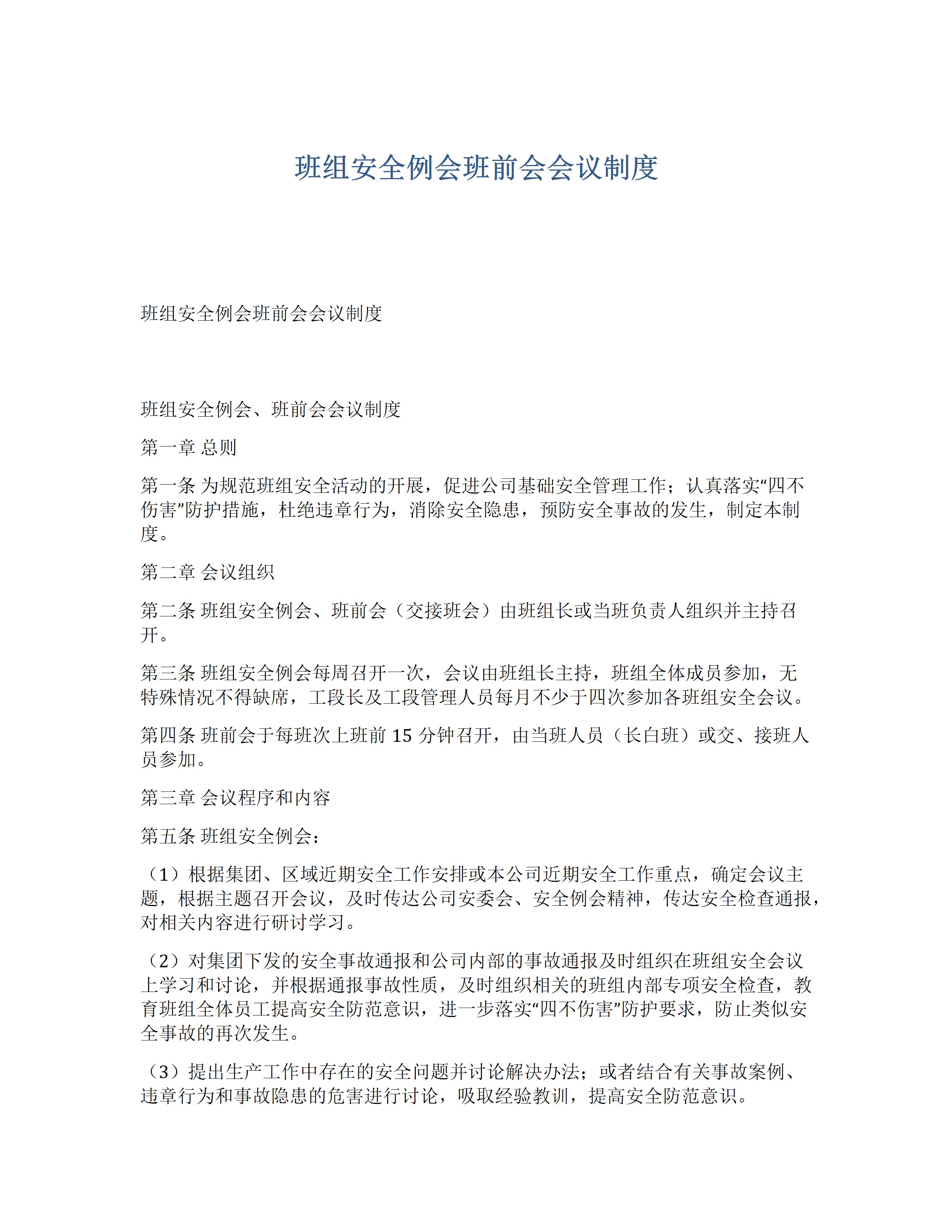 / 班组安全例会班前会会议制度