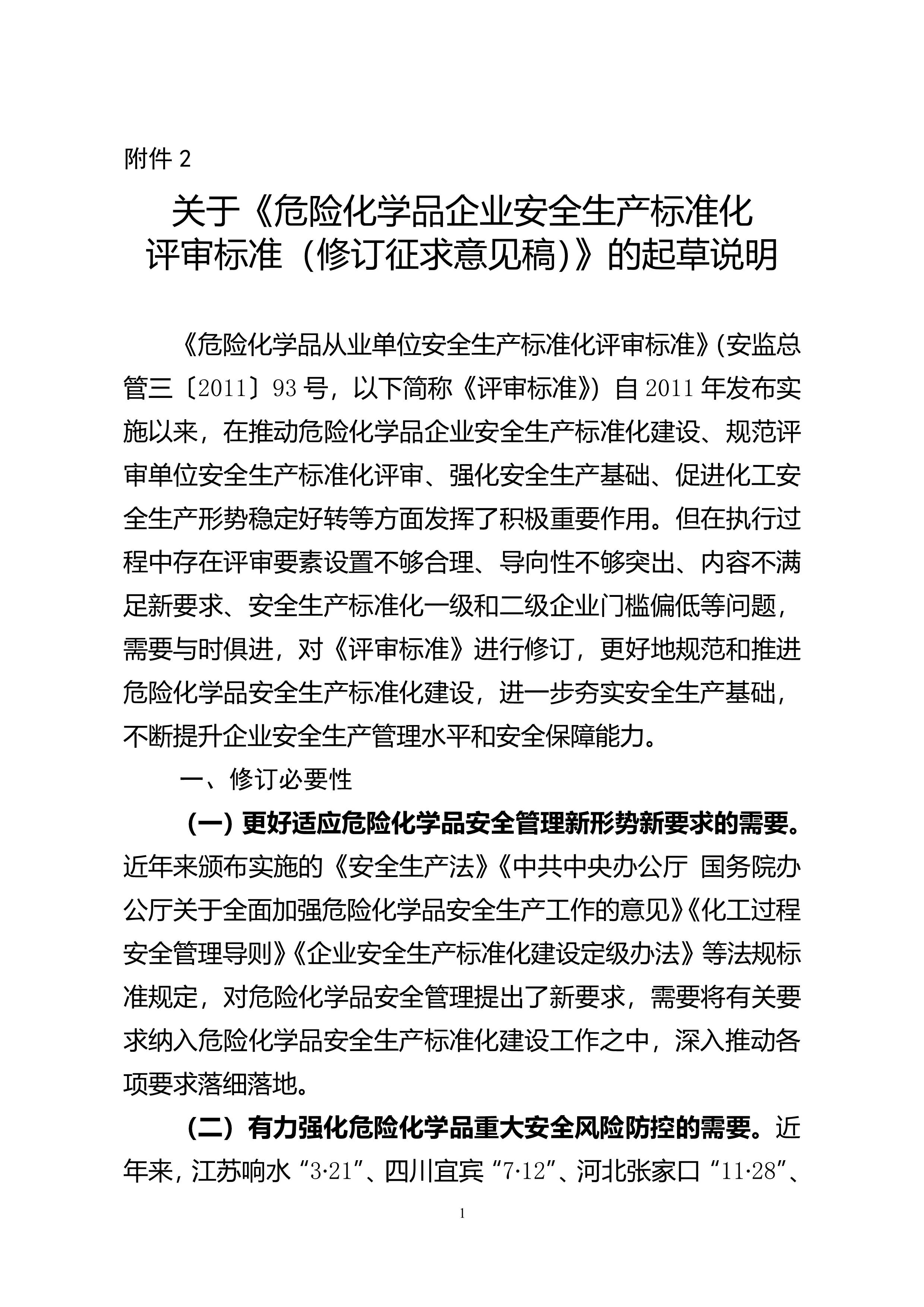 / 《危险化学品企业安全生产标准化评审标准(修订征求意见稿)》起草说明