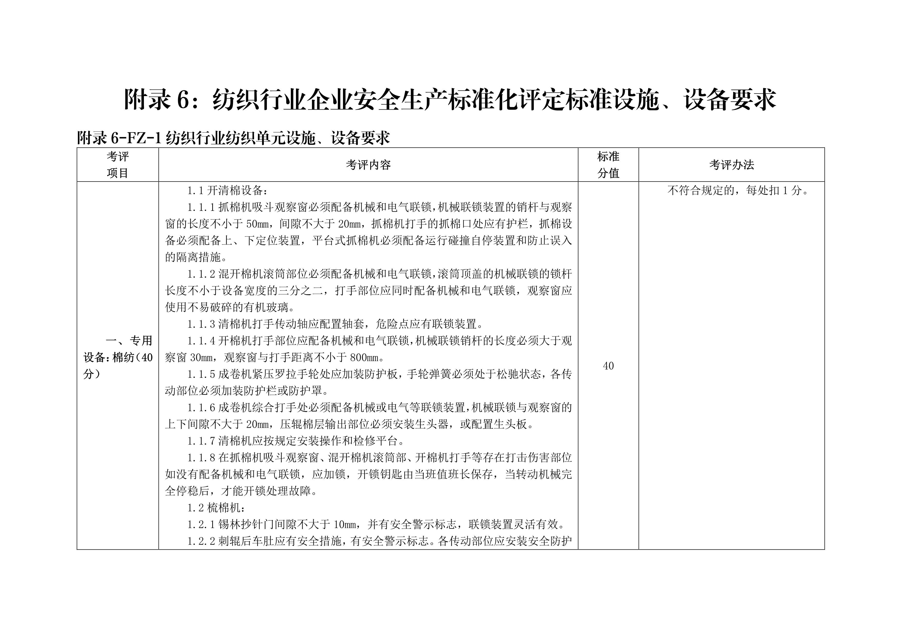 纺织行业企业安全生产标准化评定标准设施、设备要求(2个单元)