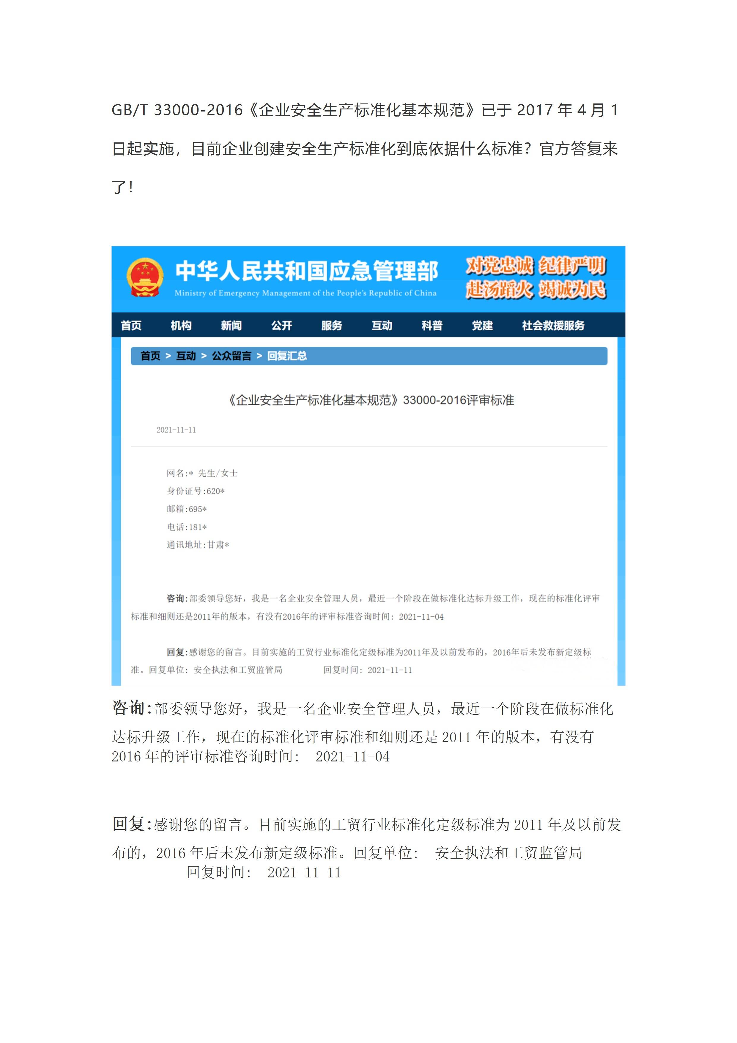 / 应急部关于安全生产标准化评审及定级标准的相关答复