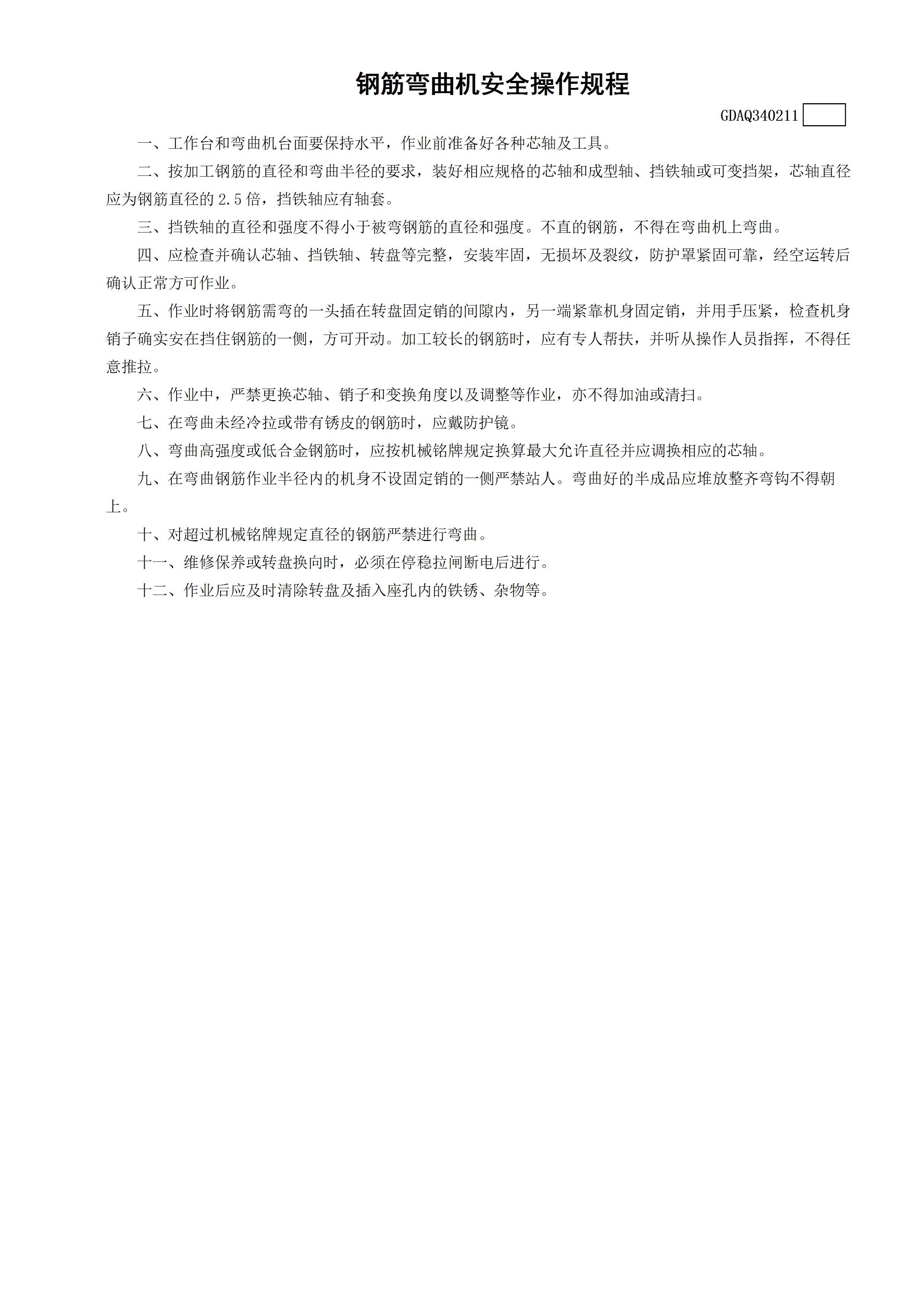 钢筋弯曲机安全操作规程GDAQ340211[文档]