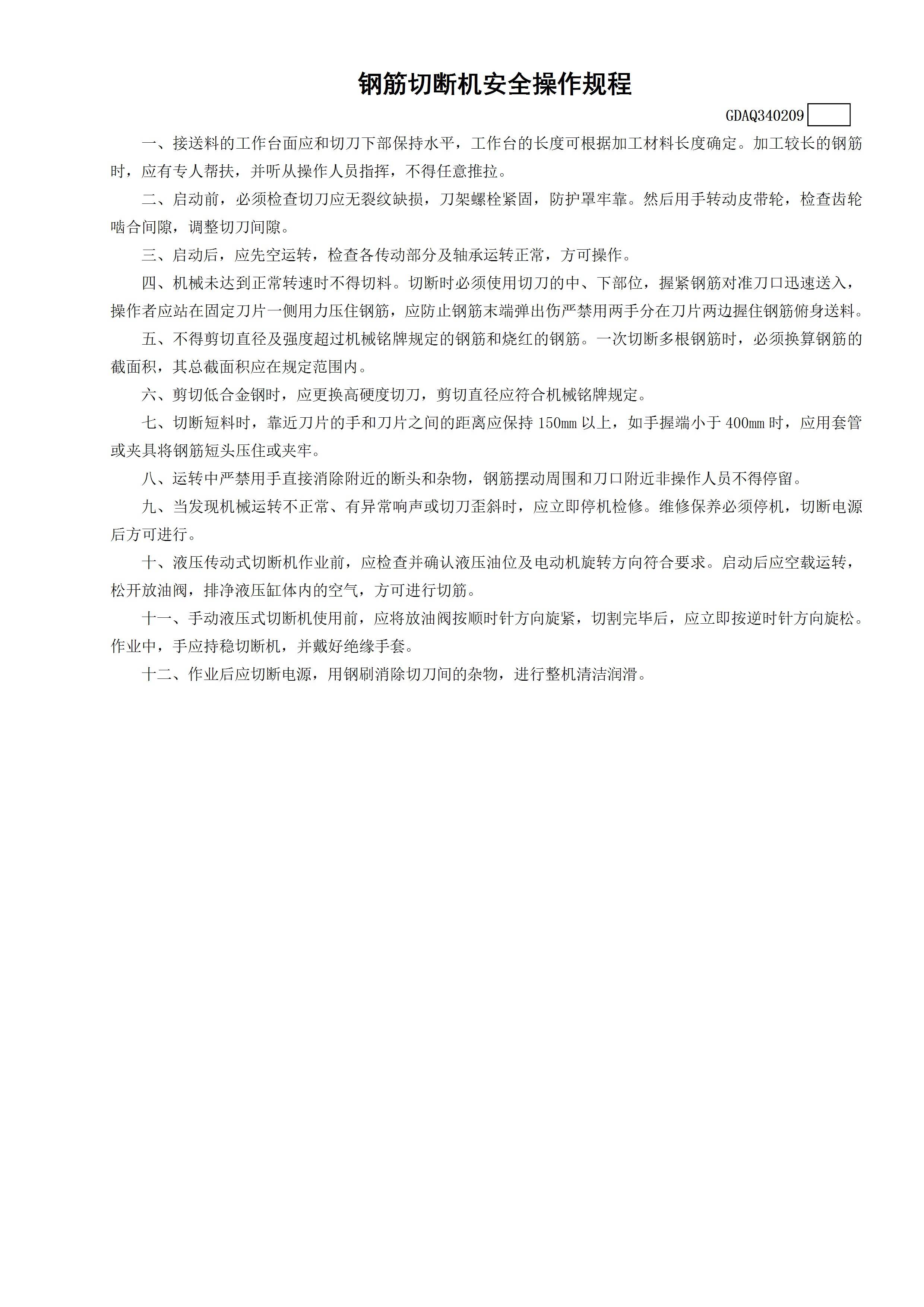 / 钢筋切断机安全操作规程GDAQ340209[文档]