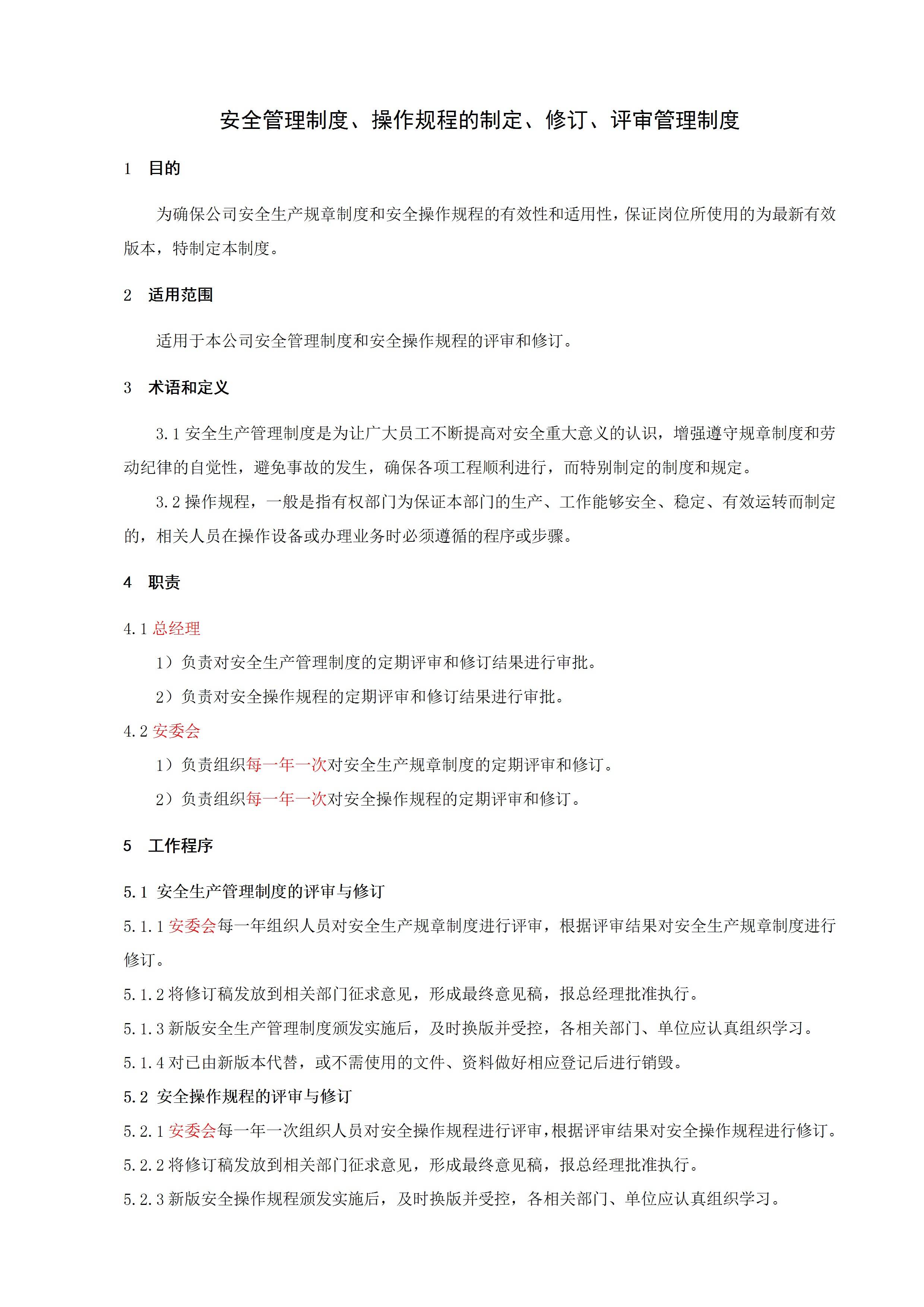 安全管理制度,操作规程的制定,评审与修订制度[文档]