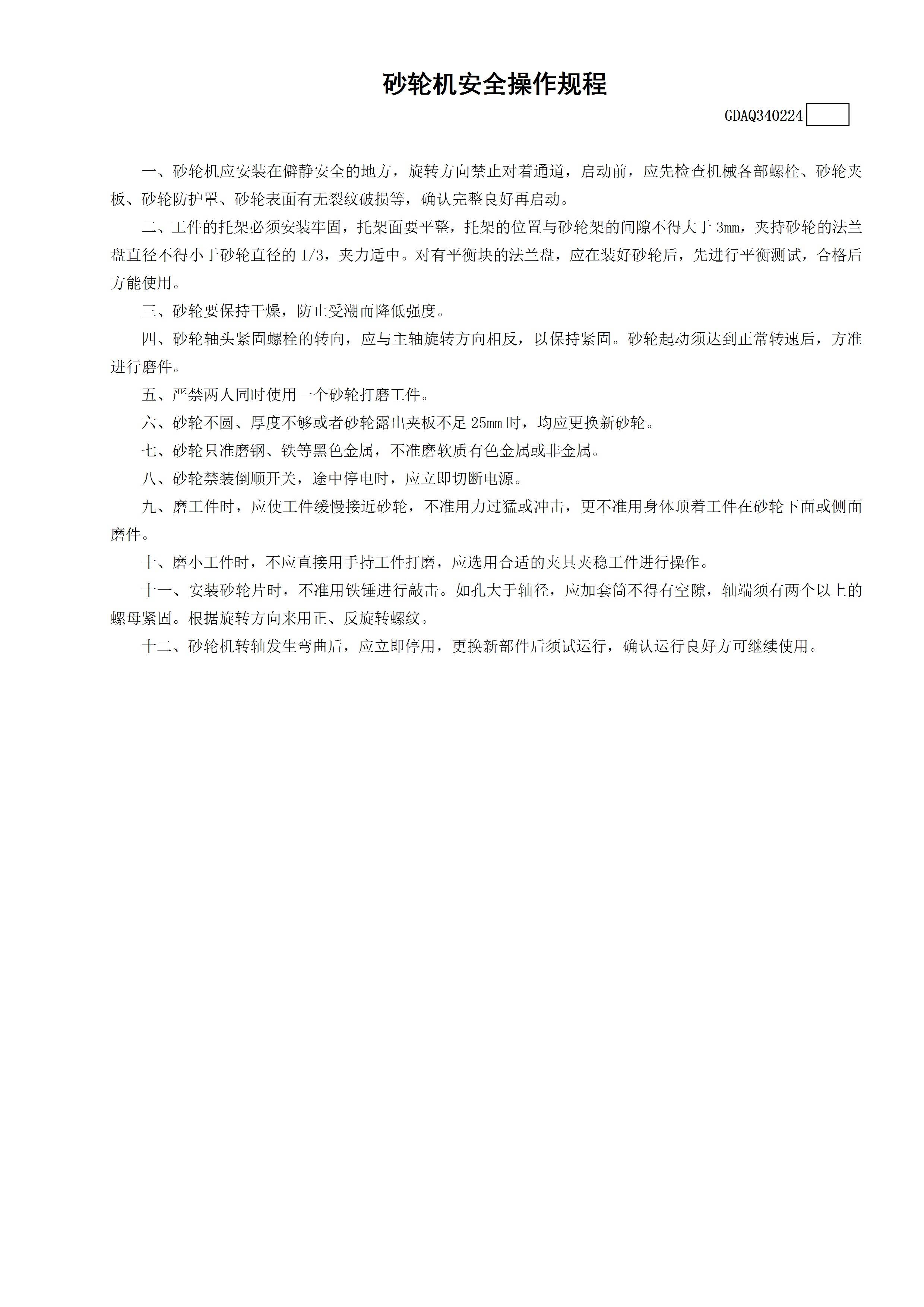 / 砂轮机安全操作规程GDAQ340224[文档]