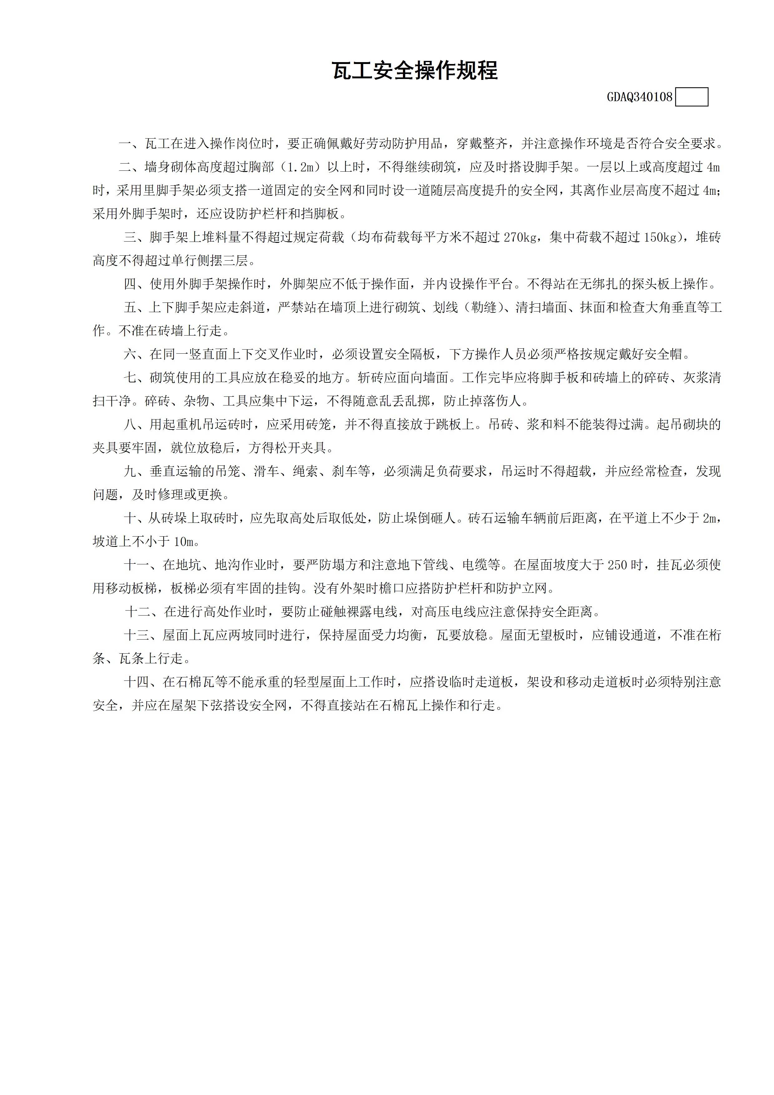/ 瓦工安全操作规程GDAQ340108[文档]