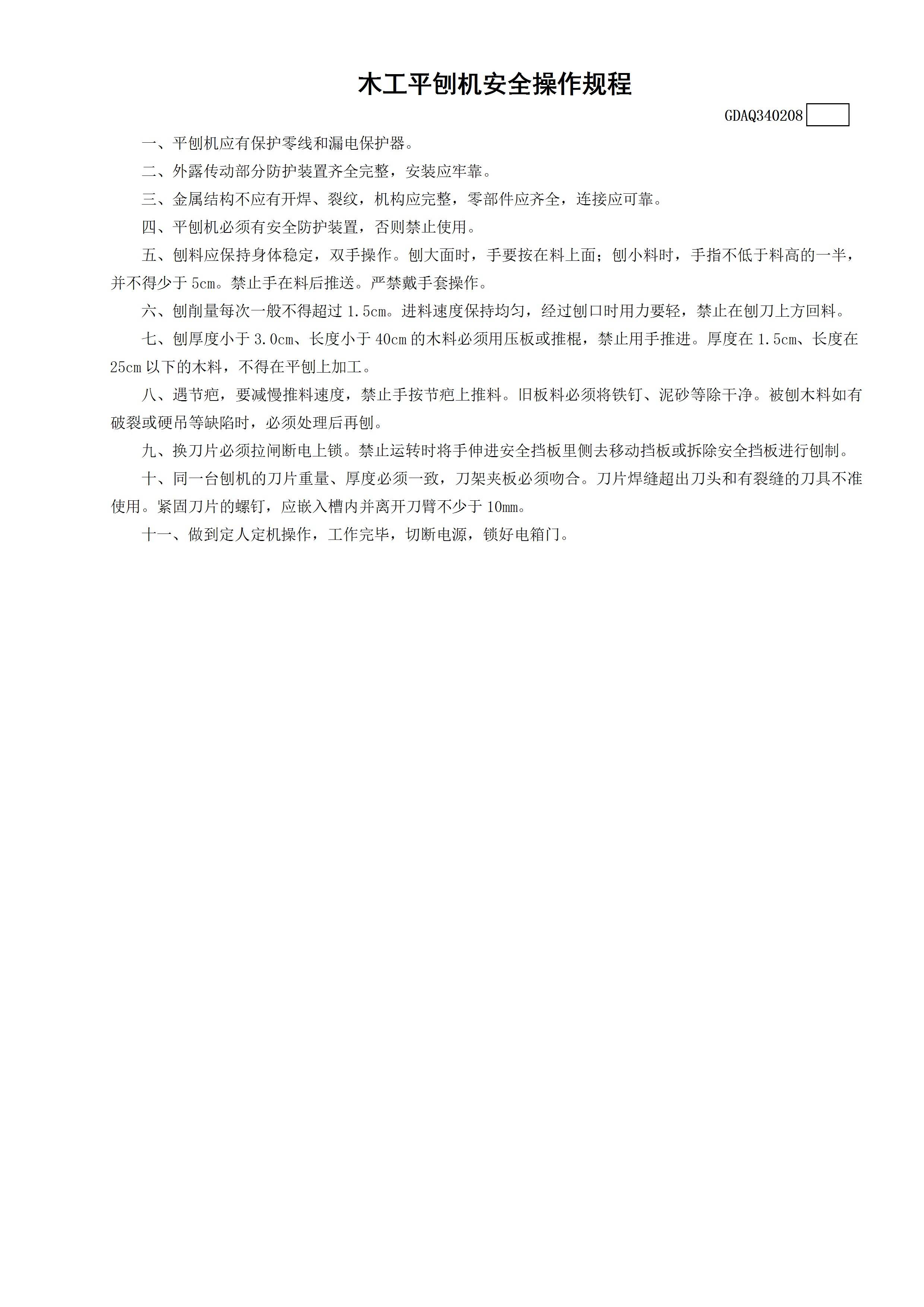 / 木工平刨机安全操作规程GDAQ340208[文档]