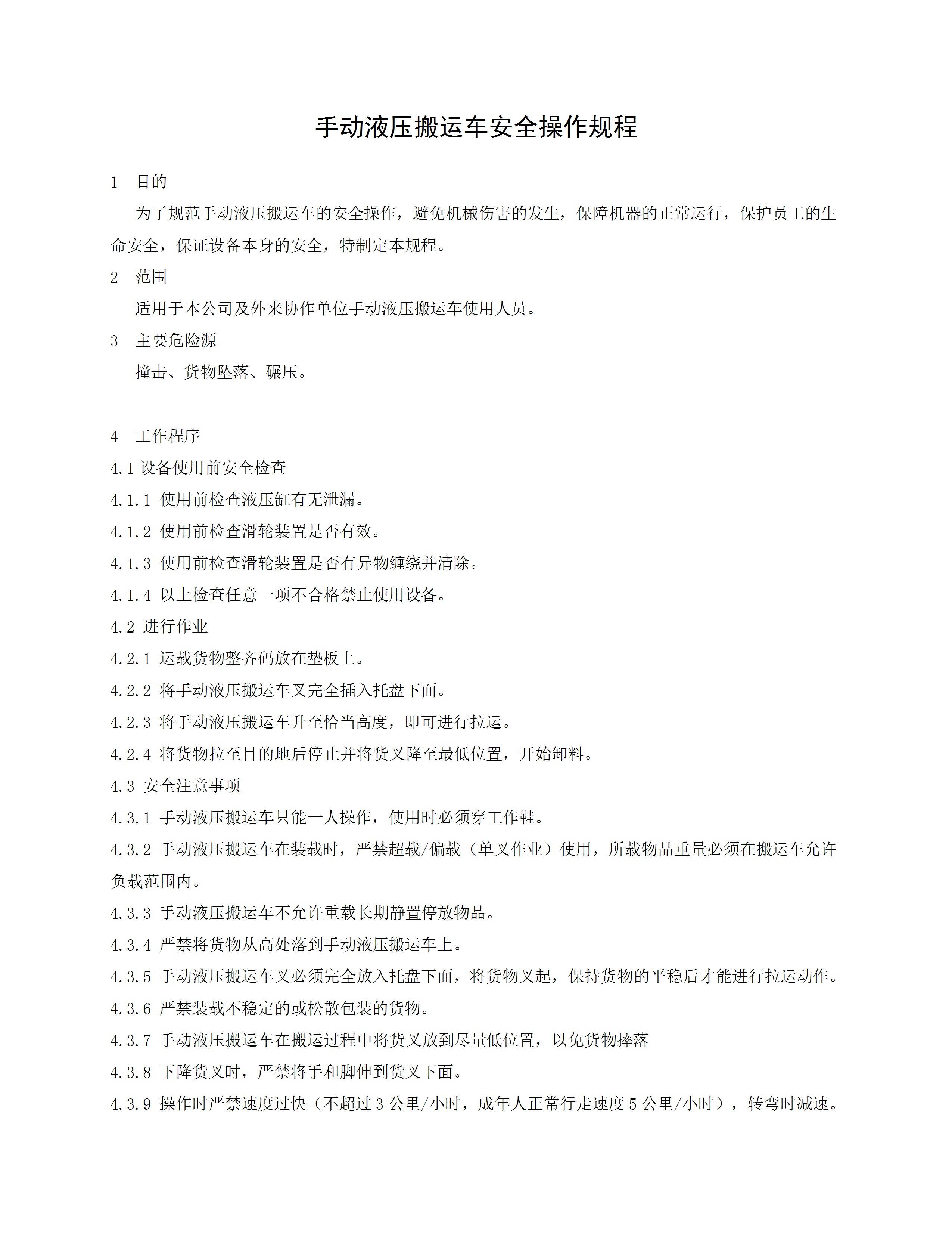 手动液压搬运车安全操作规程[文档]