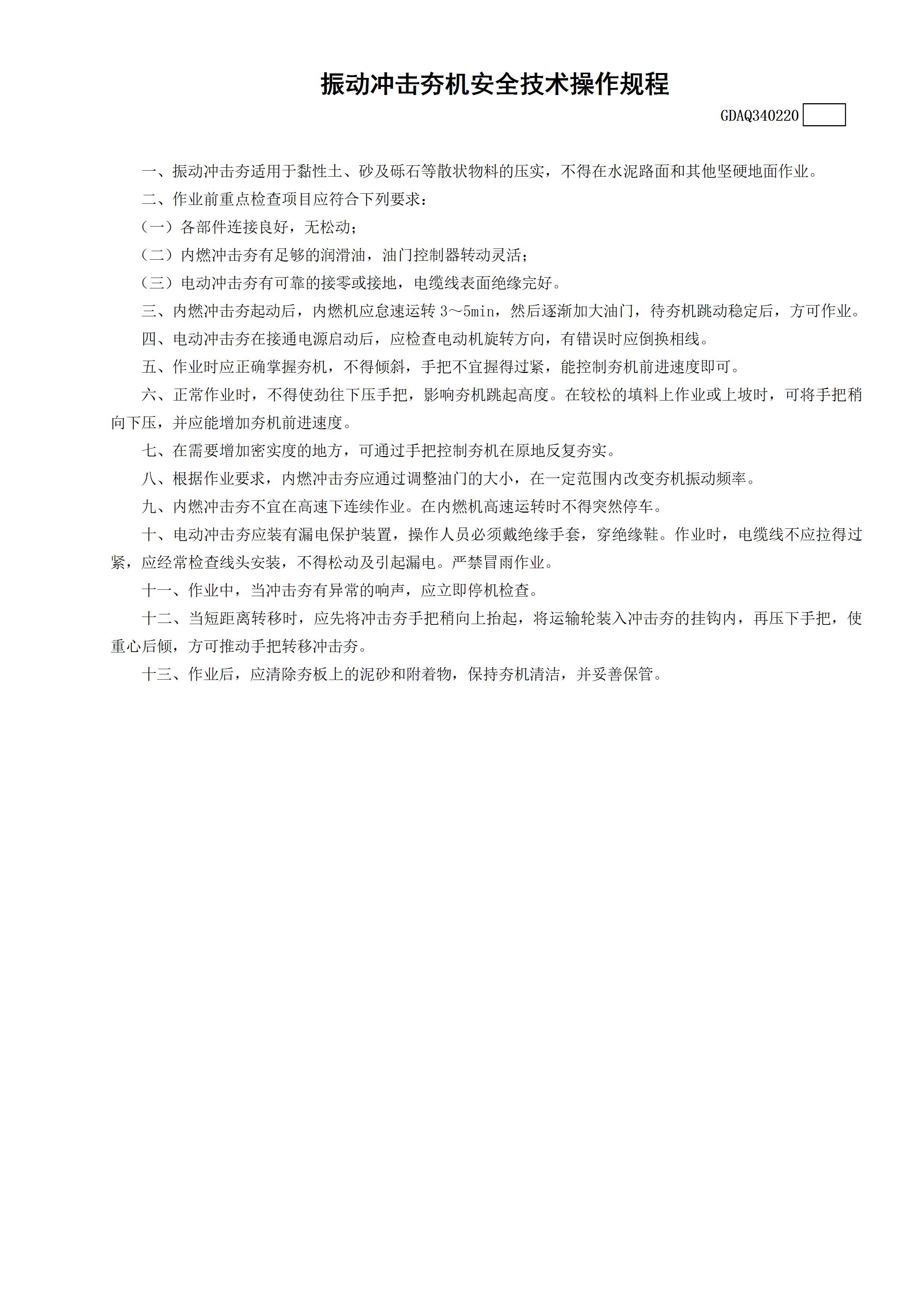 / 振动冲击夯机安全技术操作规程GDAQ340220[文档]