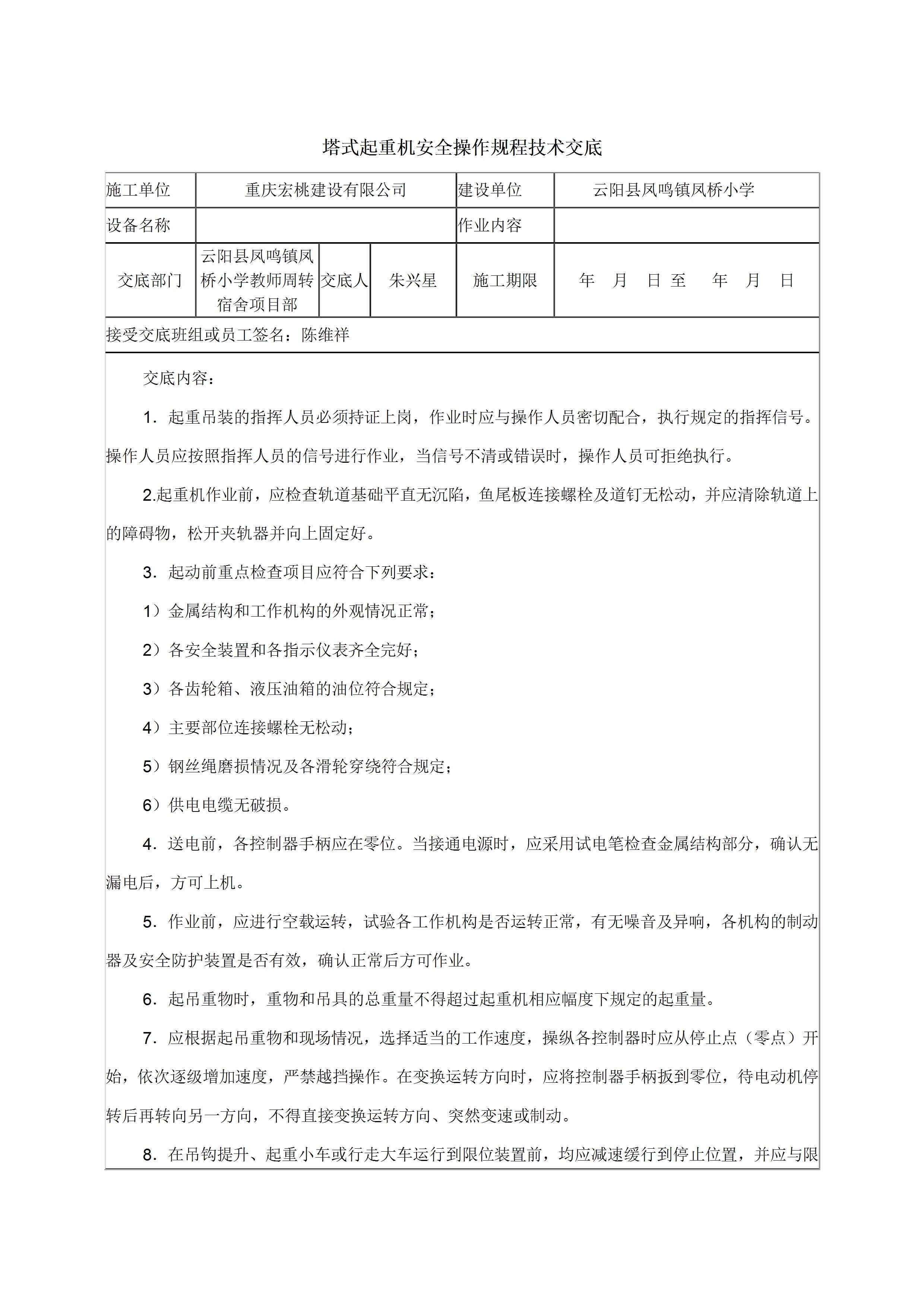 / 塔式起重机安全操作规程技术交底[文档]