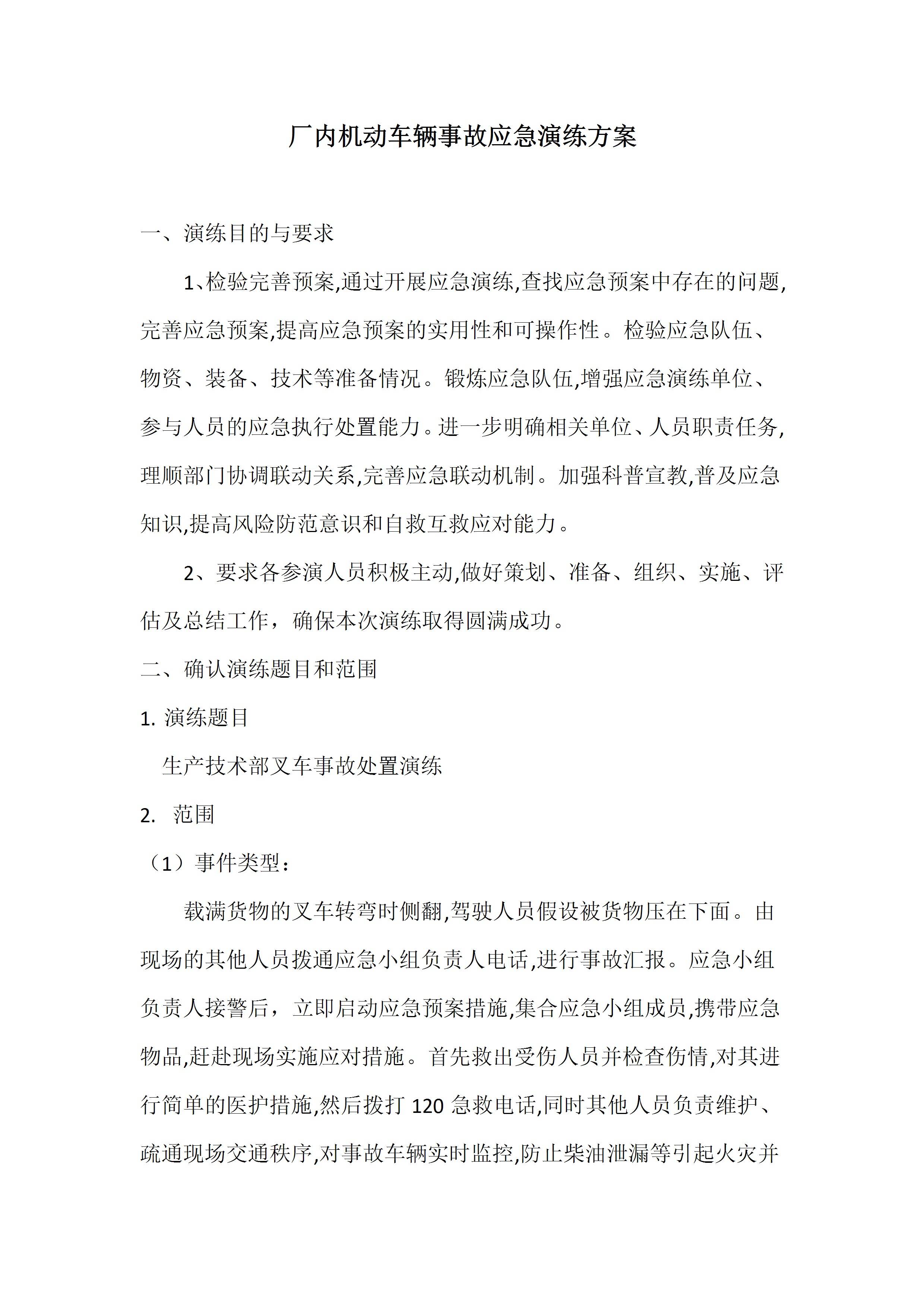 【演练方案】厂内机动车辆事故应急演练方案4页