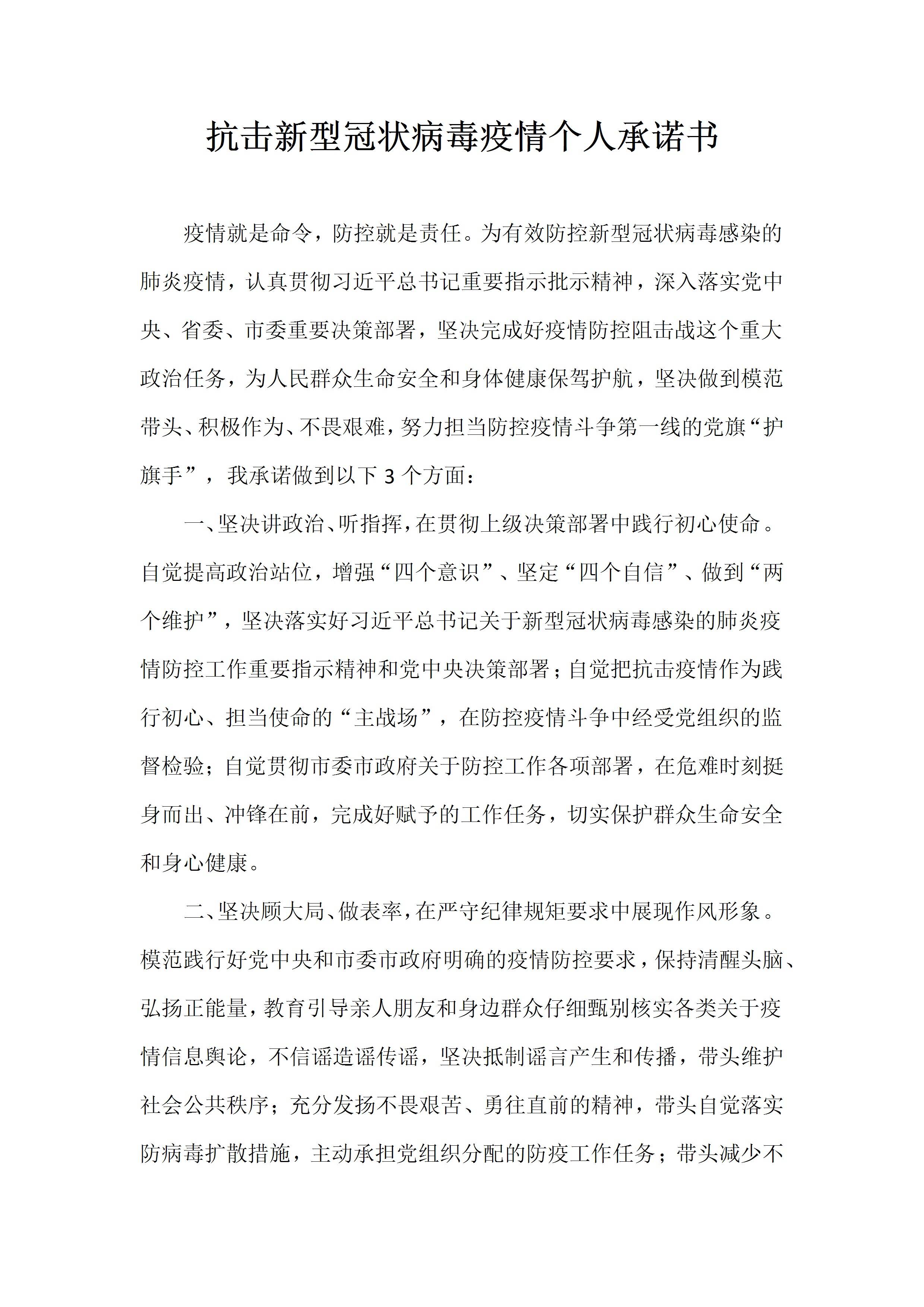 / 抗击新型冠状病毒疫情个人承诺书