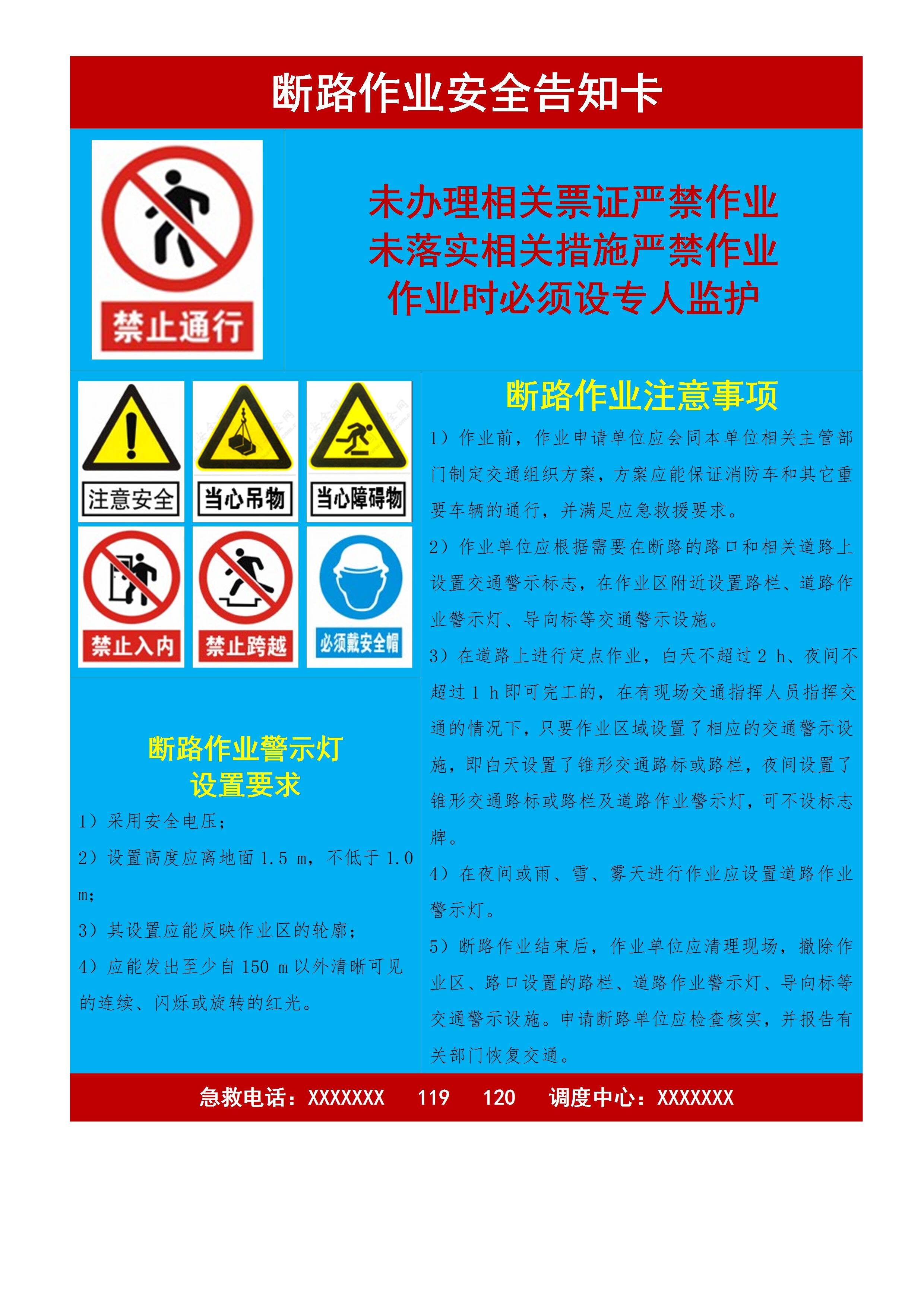 / 断路作业安全告知卡