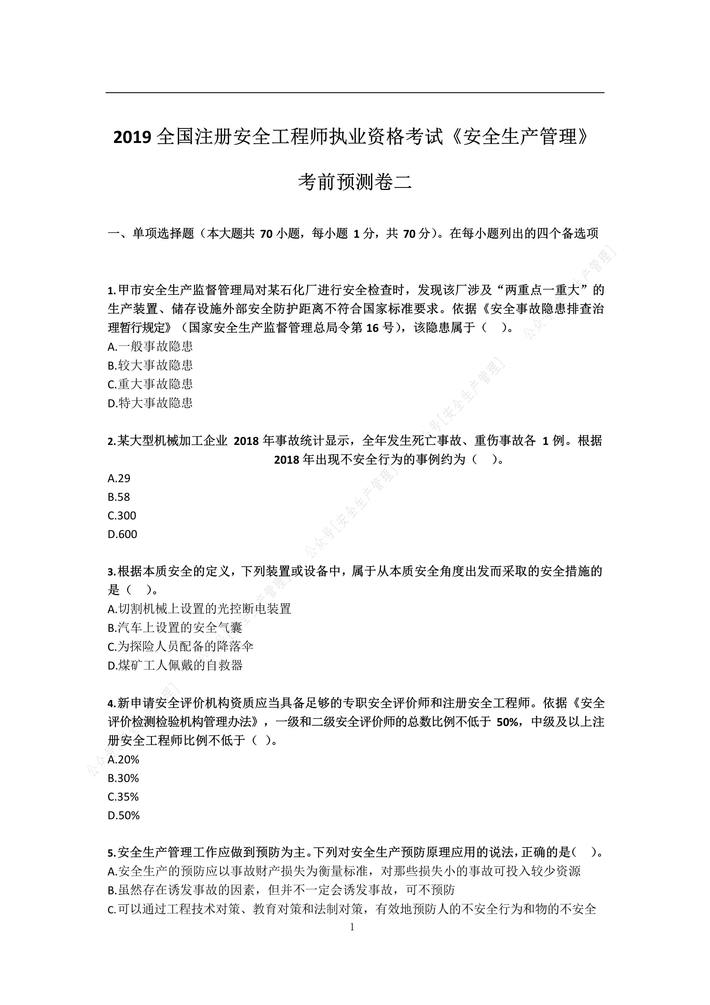 / 2019《安全生产管理》考前预测试卷二[PDF]