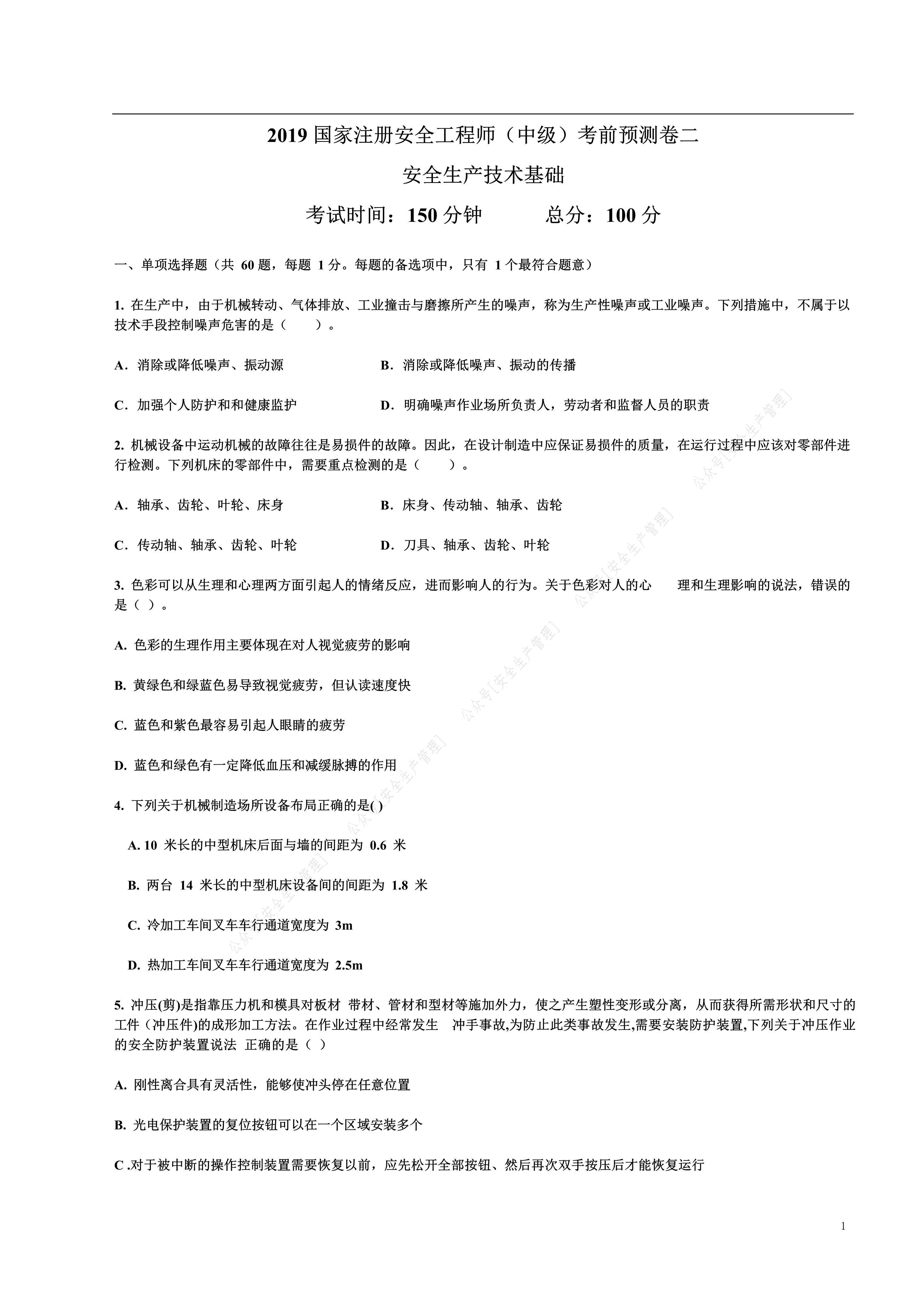 / 2019《安全生产技术基础》考前预测试卷二[PDF]