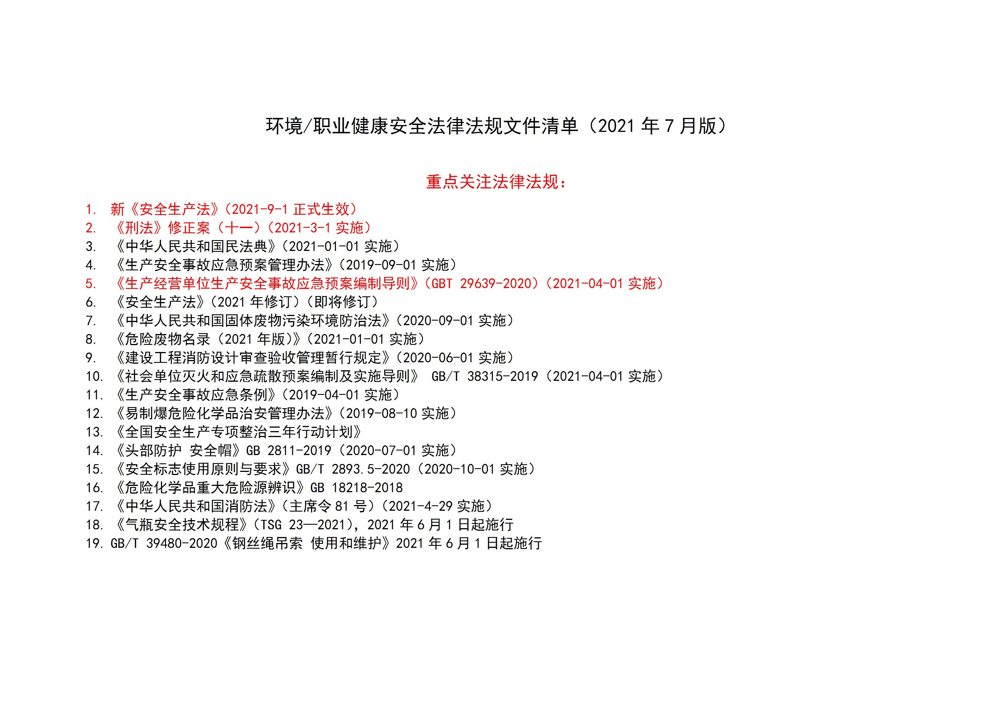 / 安全生产法律法规清单(7月版)[文档]