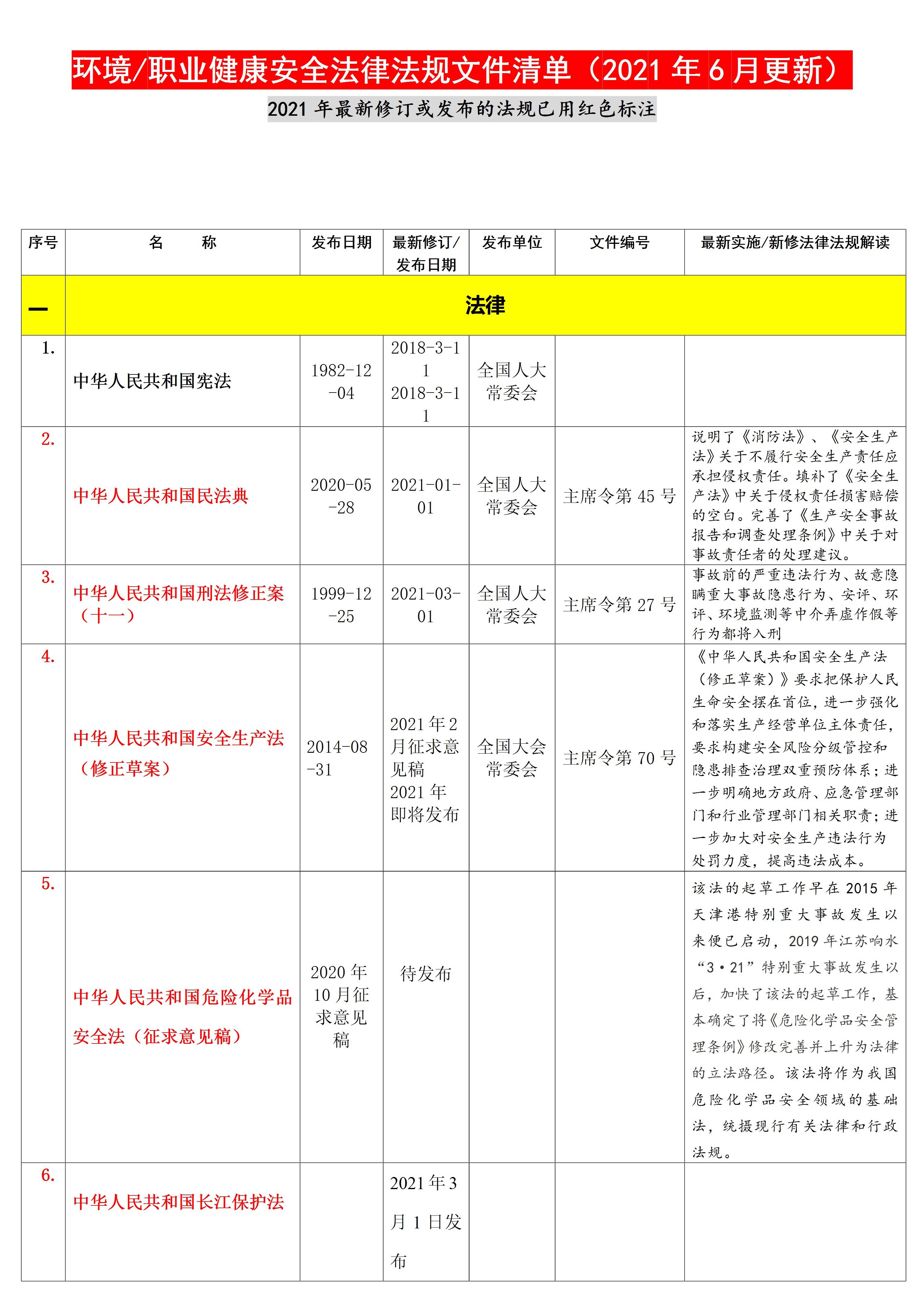 / 2021安全法律法规文件清单(2021年6月更新)[文档]