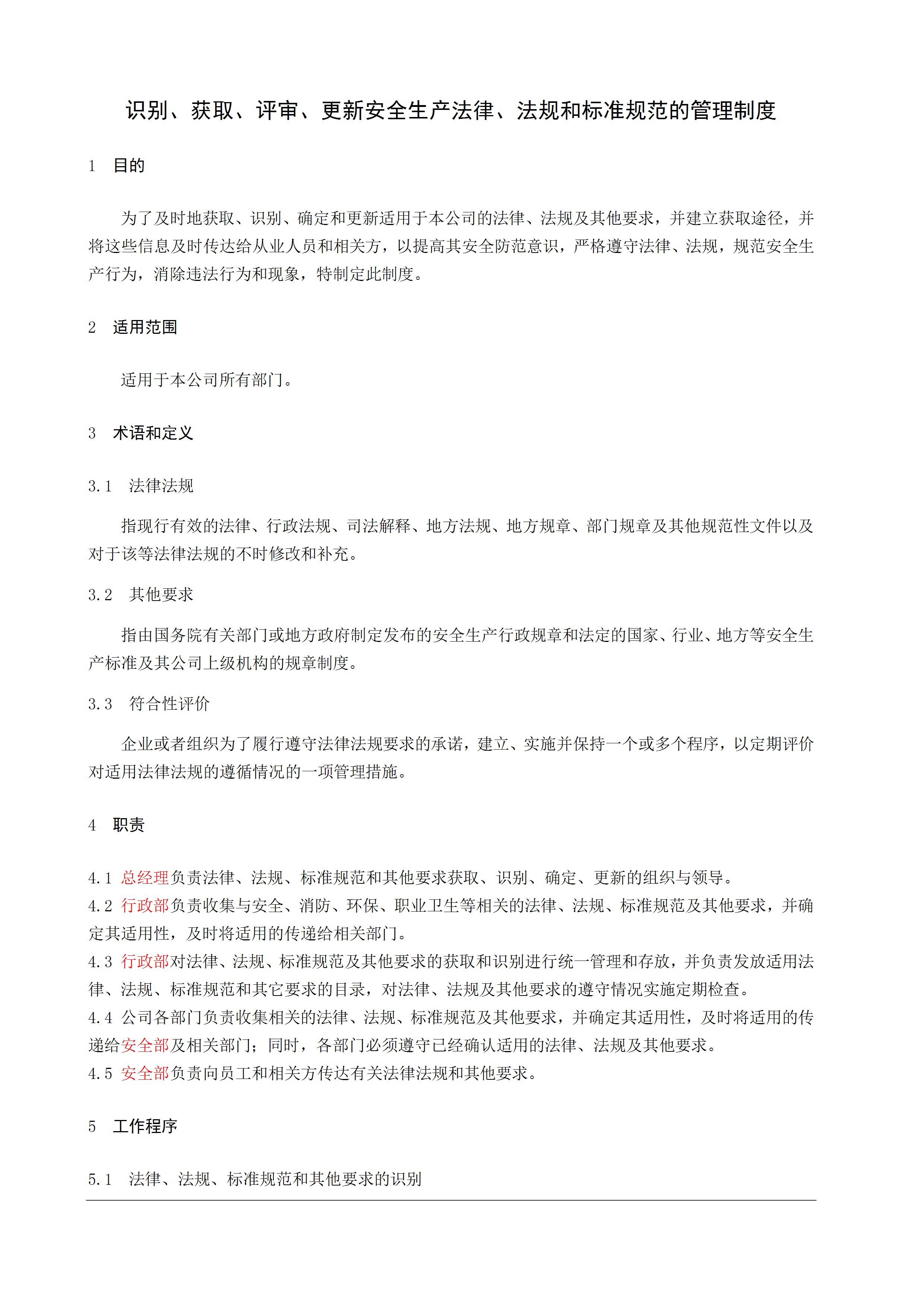 / 识别,获取,评审,更新安全生产法律,法规和标准规范管理制度[文档]