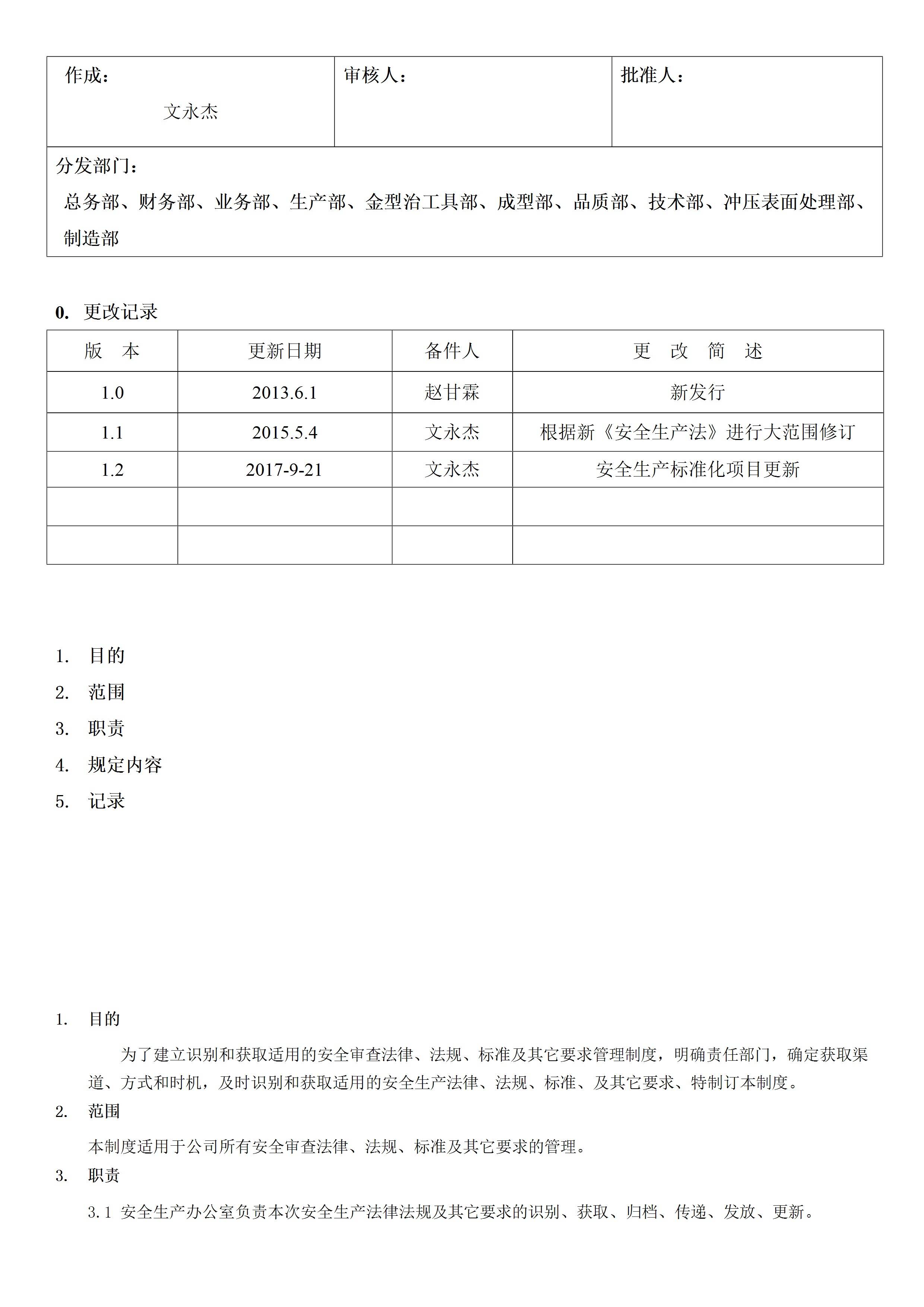 识别和获取适用的安全生产法律法规,标准及其它要求管理制度(4-1)[文档]