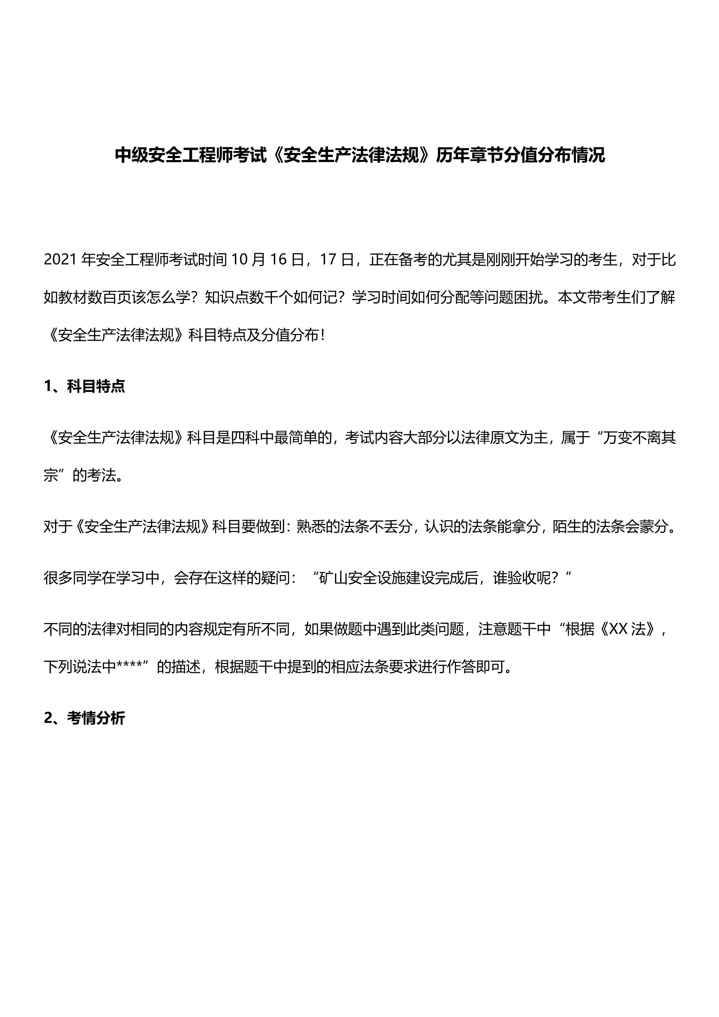 / 注安《法律法规》历年章节分值分布[PDF]