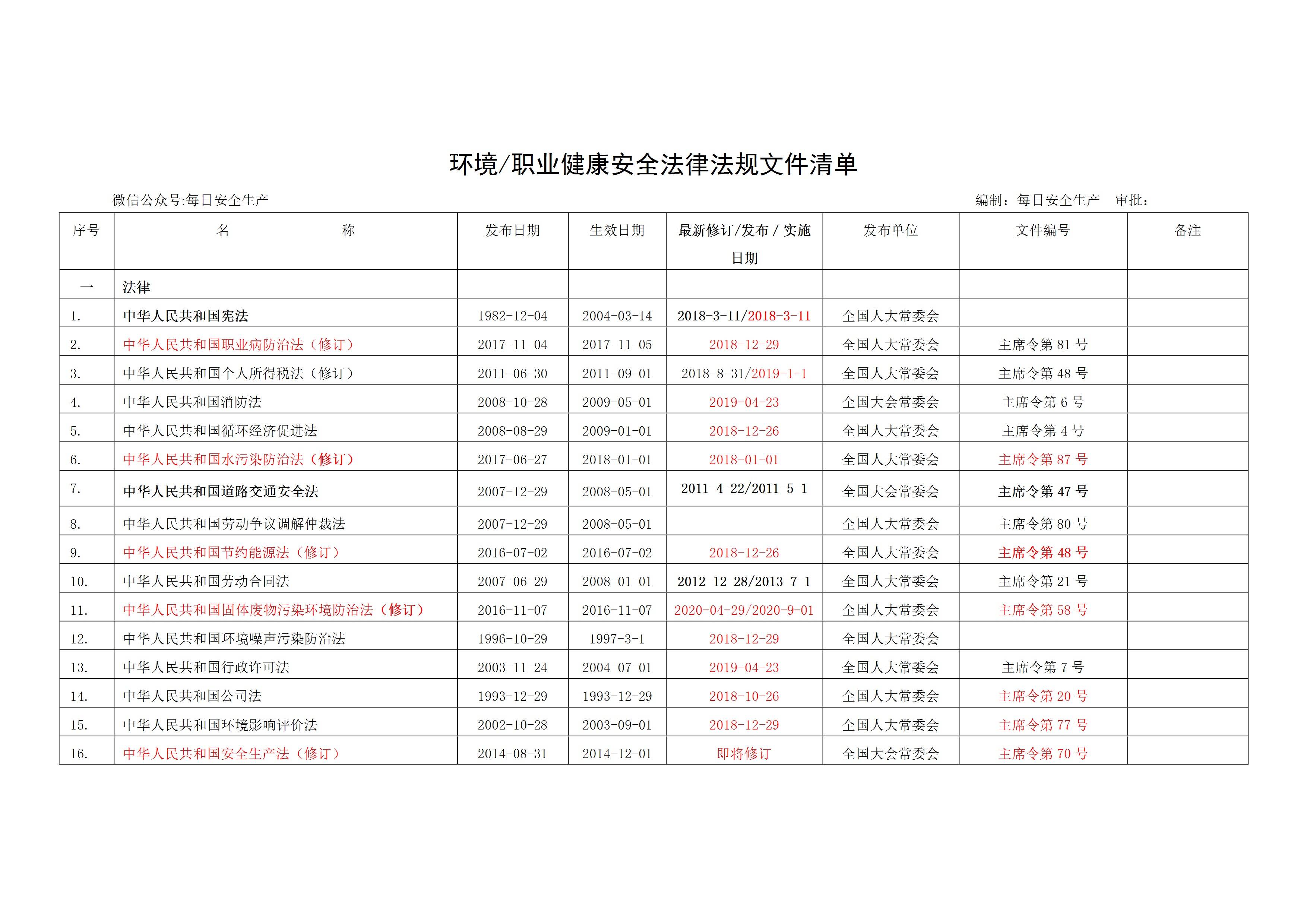 法律法规清单及全文(2021年1月版),对照更新[文档]