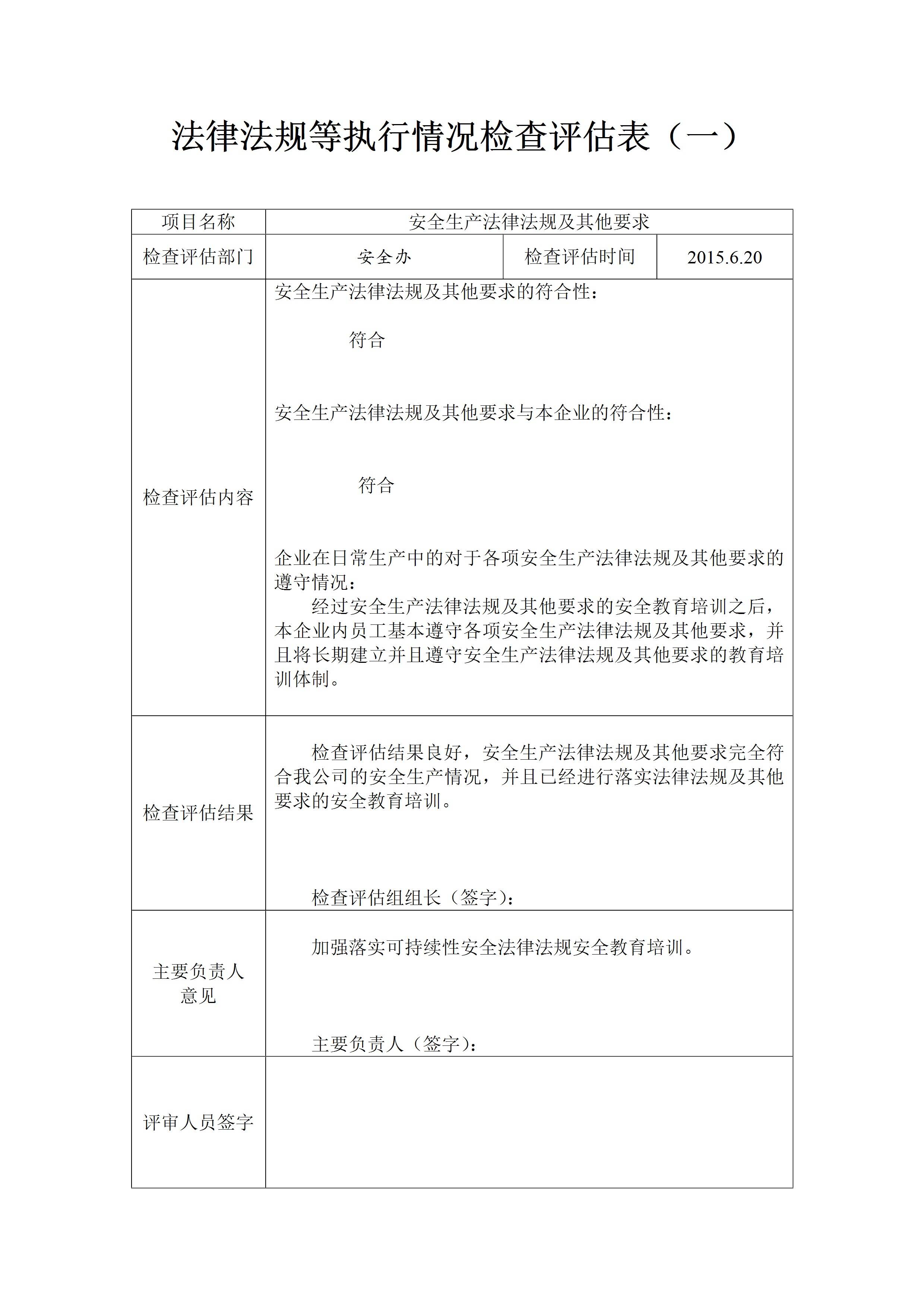 法律法规等执行情况检查评估表[文档]
