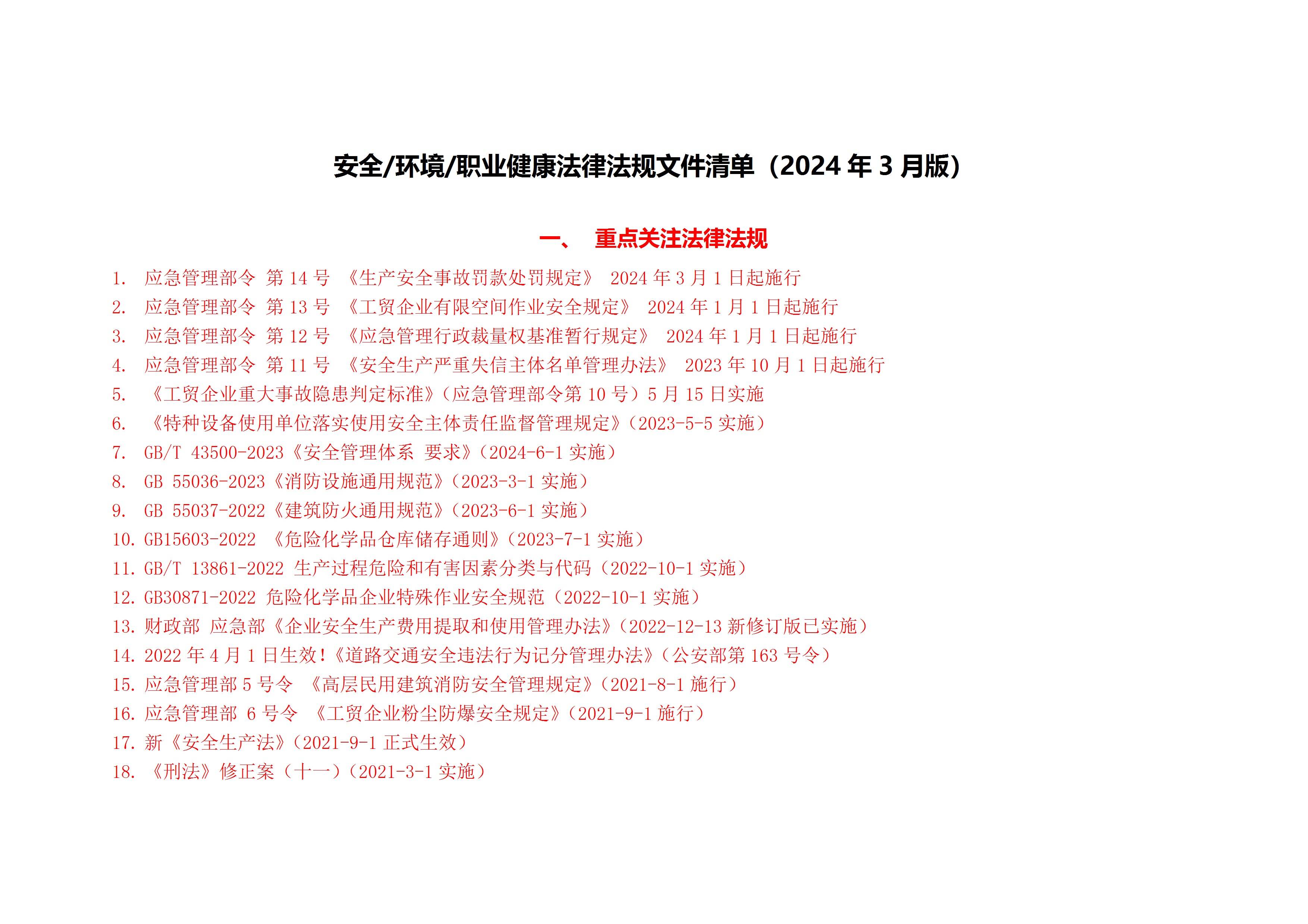 / 安全生产法律法规清单(2024年3月版)[文档]