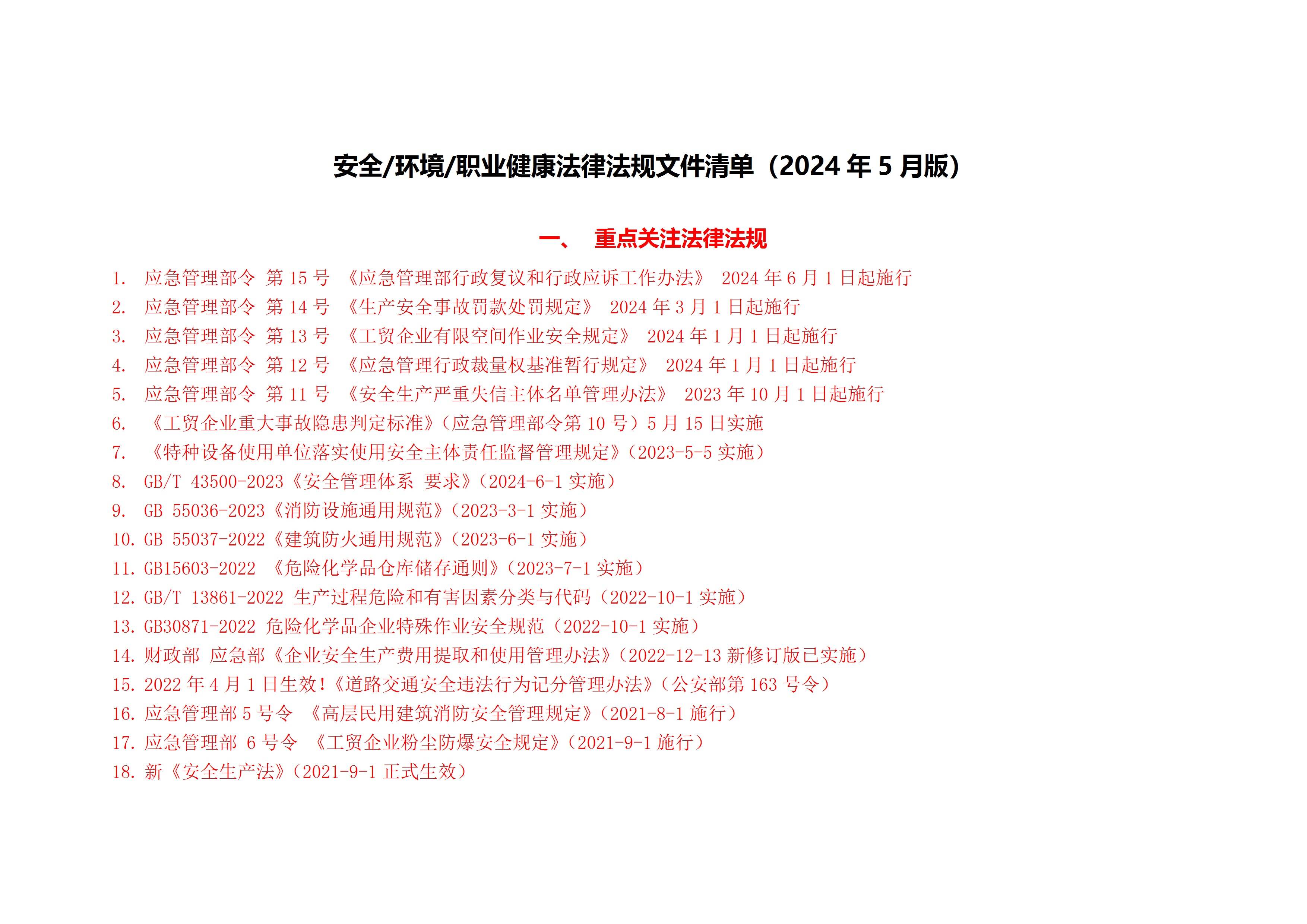 / 安全生产法律法规清单(2024年5月版)[文档]