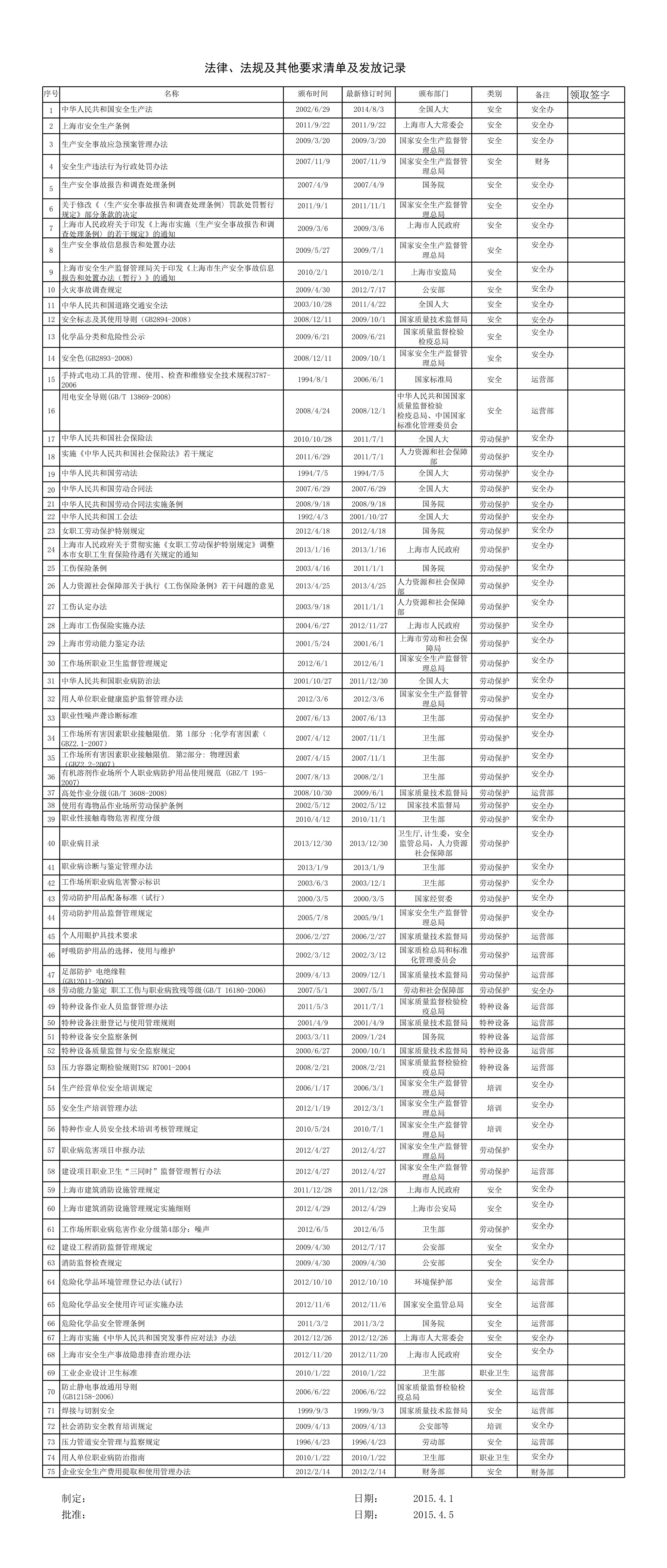 安全生产法律法规与其他要求及发放记录模板[表格]