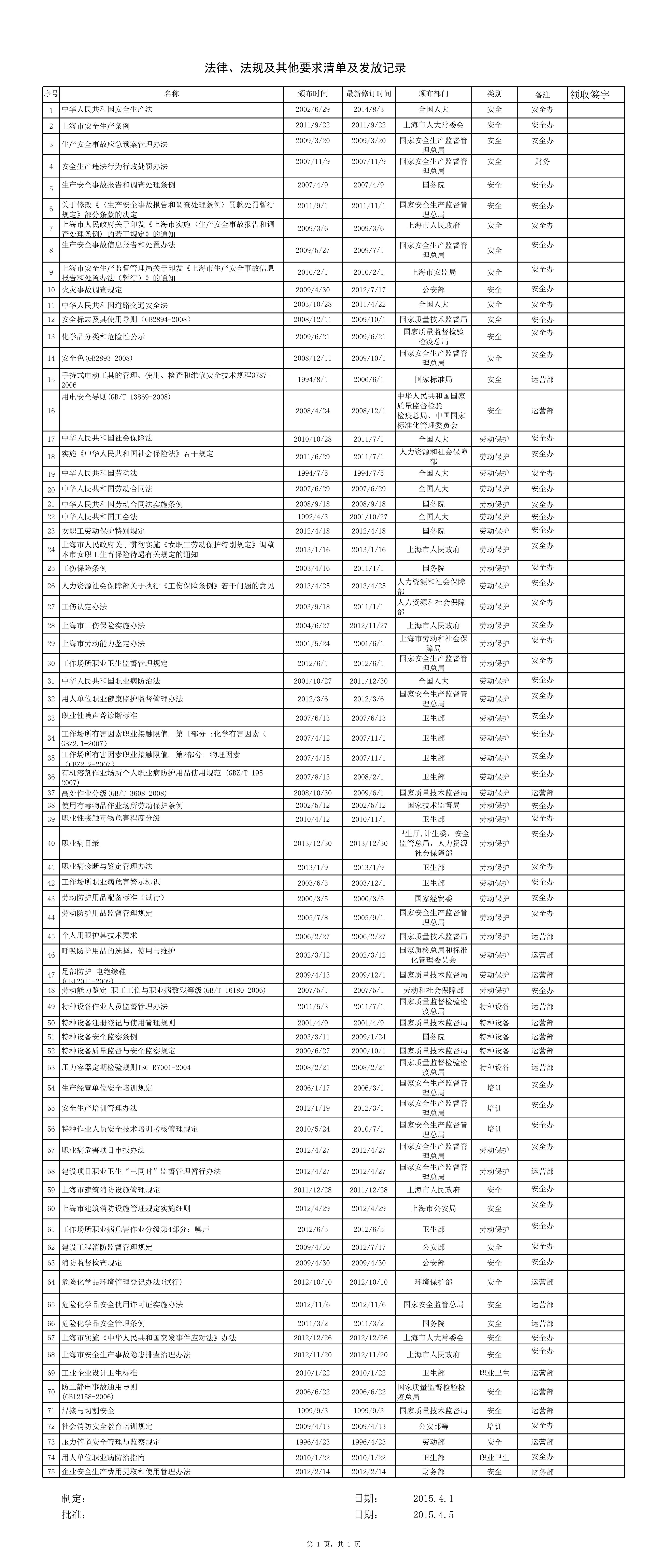 安全生产法律法规与其他要求及发放记录[表格]