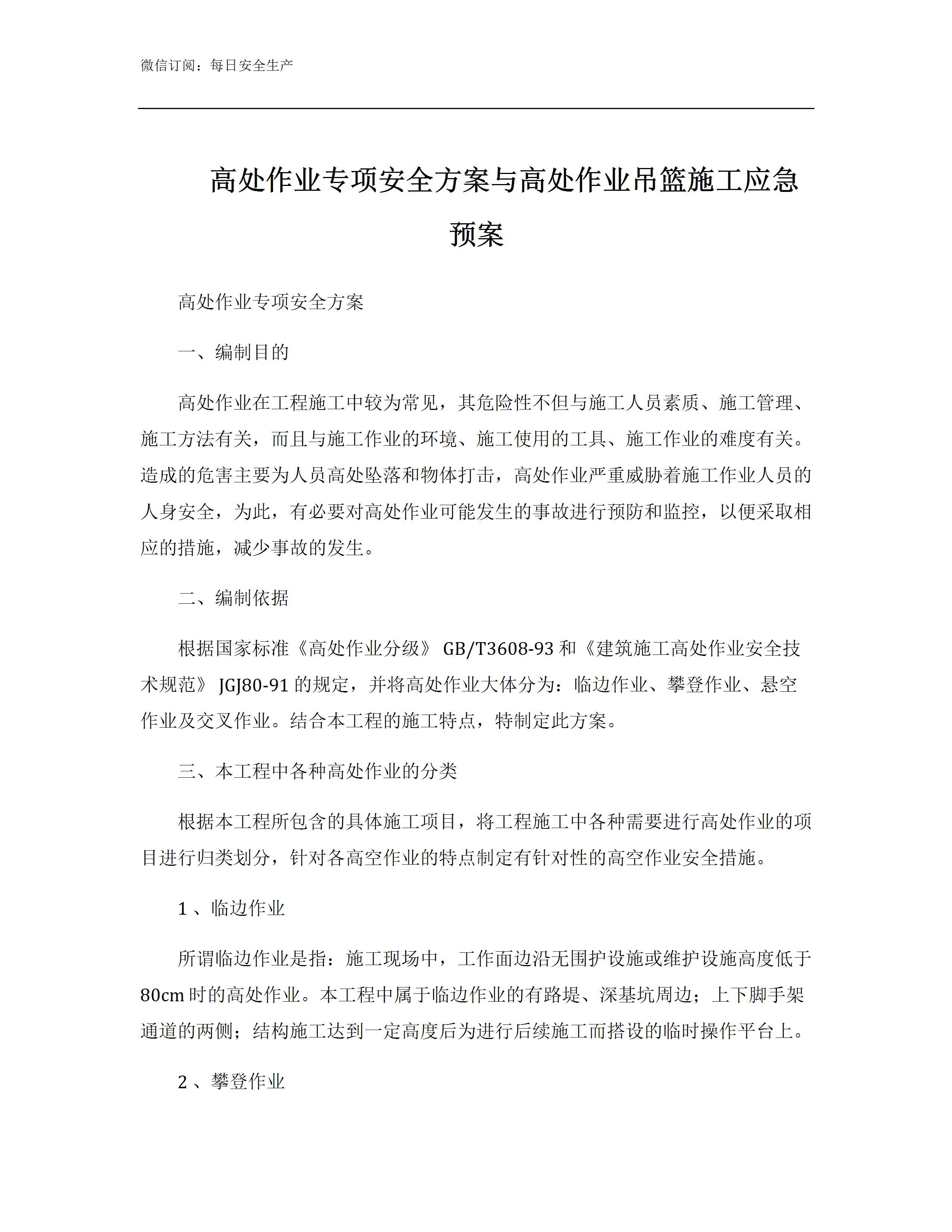 / 高处作业专项安全方案与高处作业吊篮施工应急预案