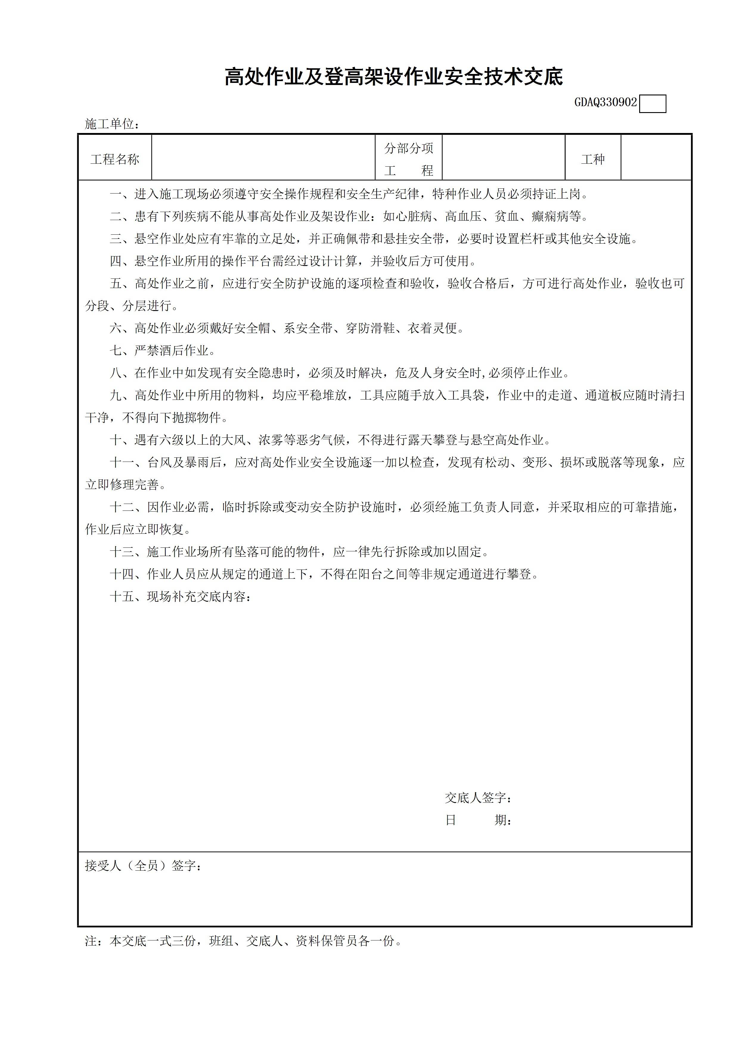 / 高处作业及登高架设作业安全技术交底GDAQ330902