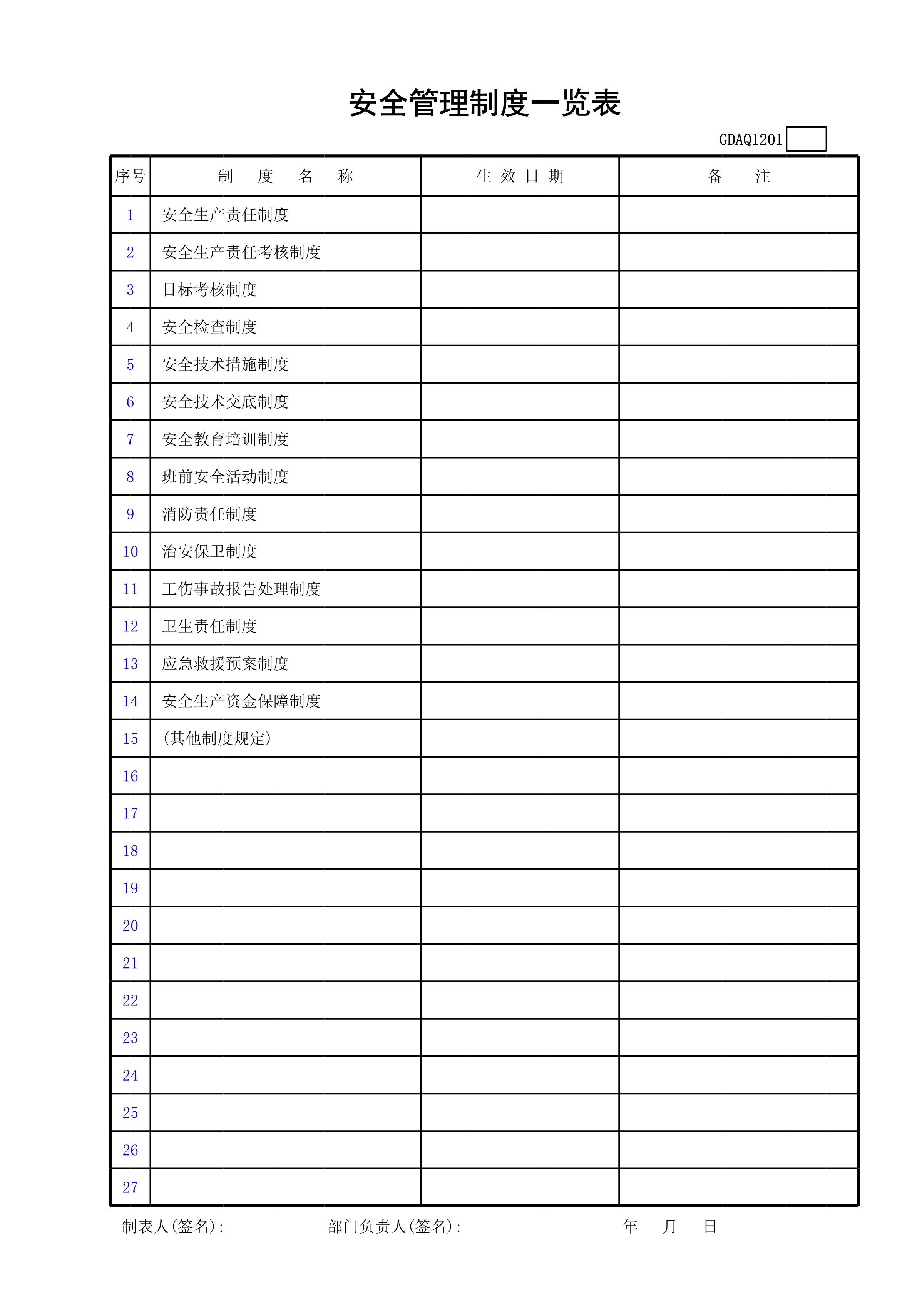 / 安全管理制度一览表GDAQ1201[文档]