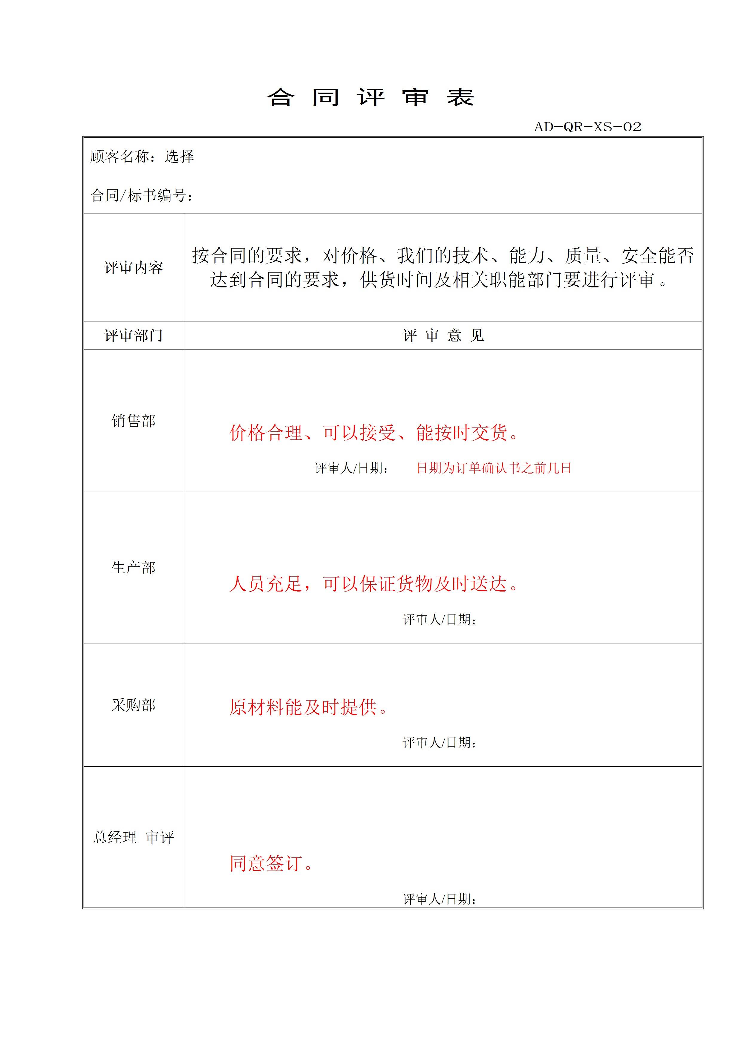 合同评审表