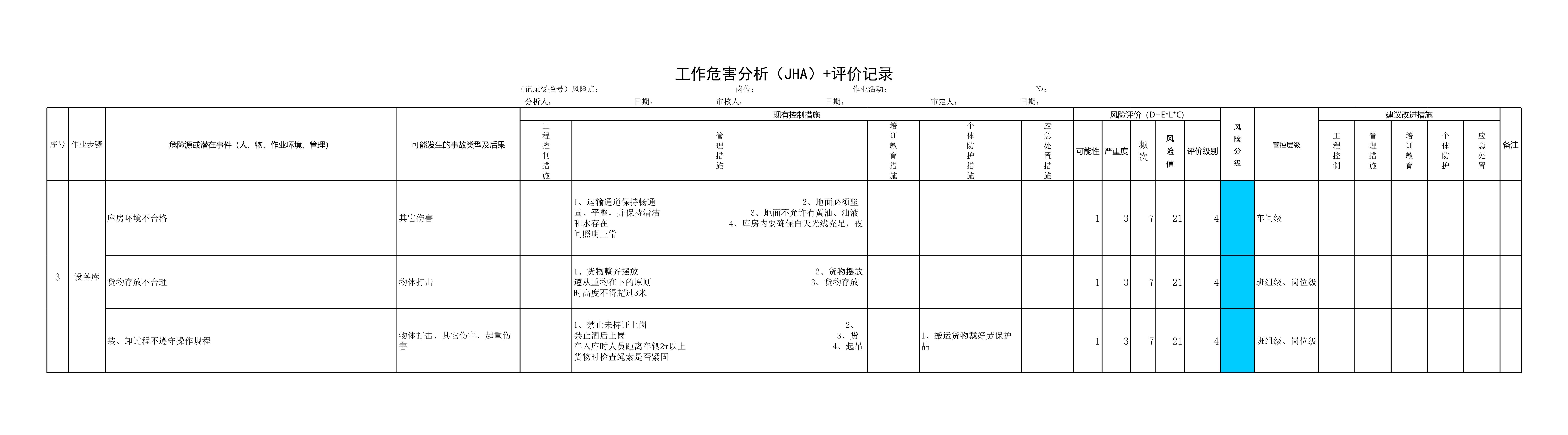 仓储安全环保分析(JHA)评价记录表[表格]
