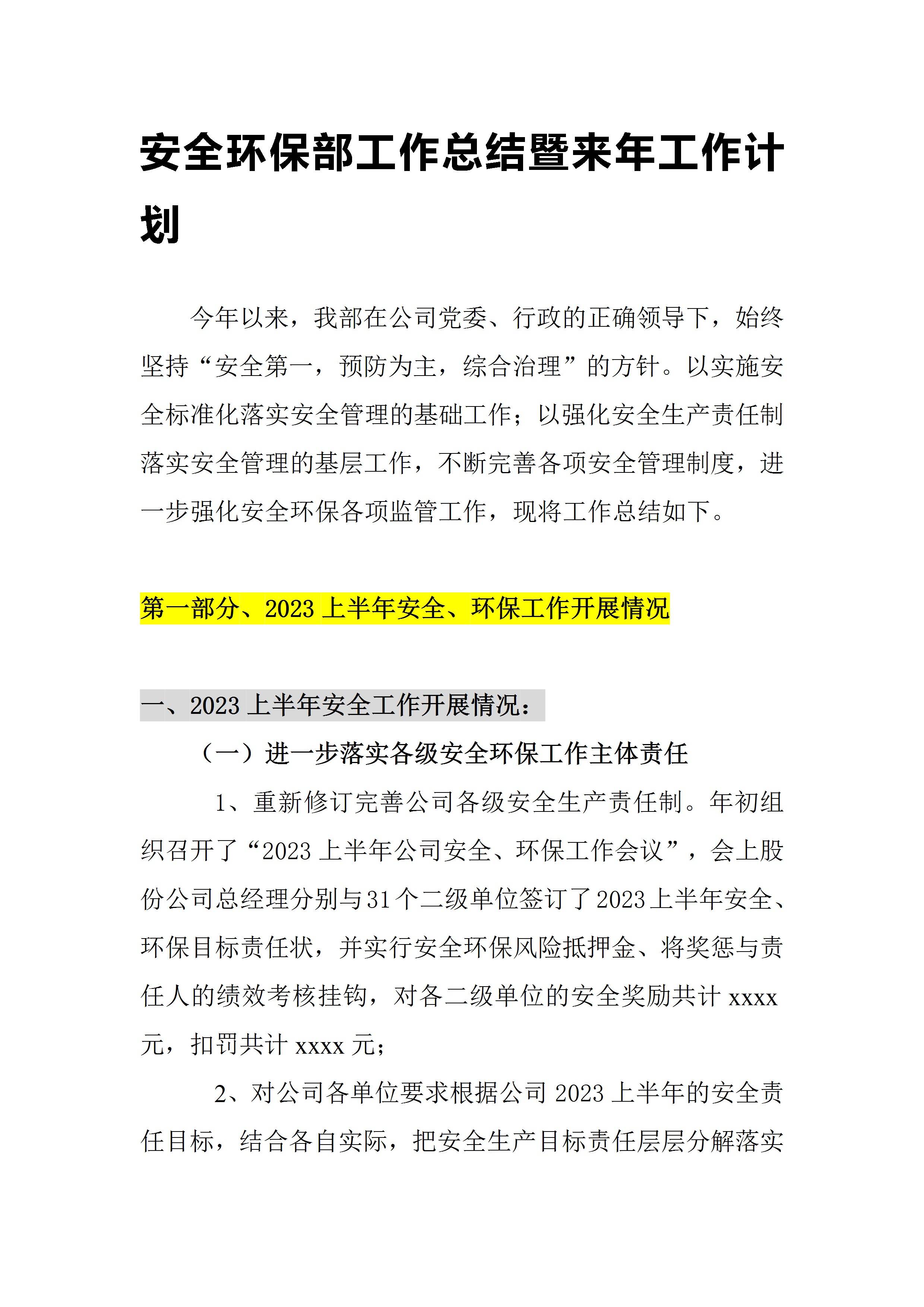 / [模板]安全环保部工作总结暨来年工作计划(28页)