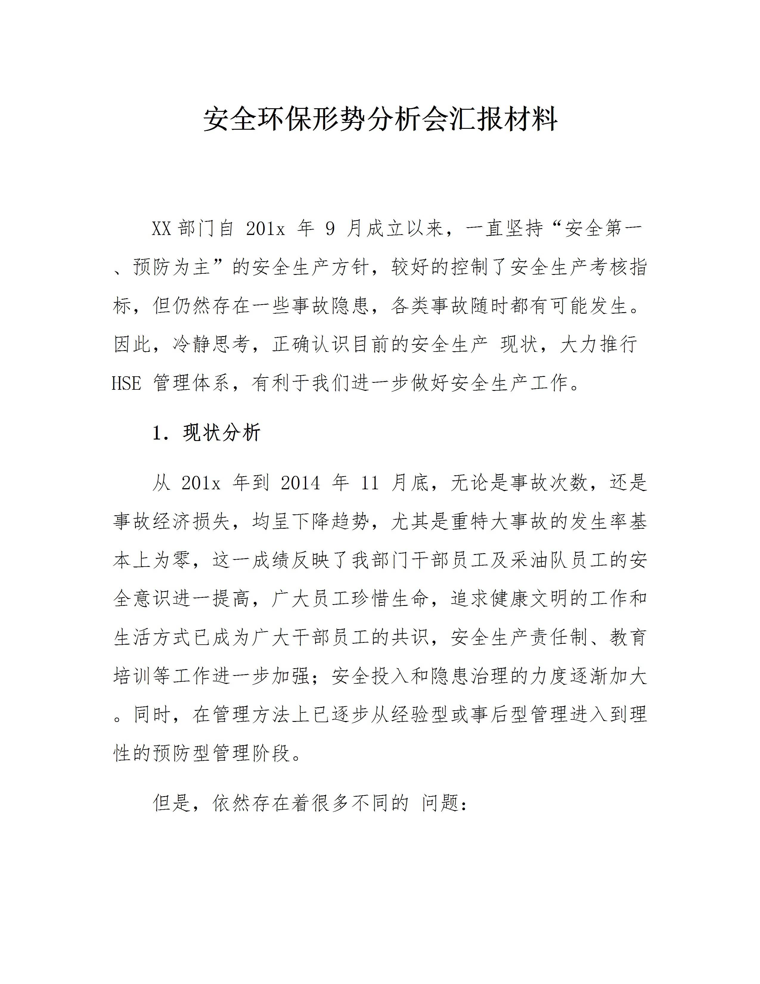 / [发言材料]某公司安全环保形势分析例会汇报材料